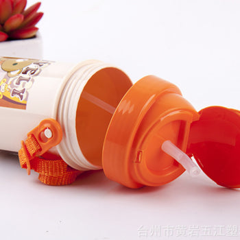 Gotë uji plastike me pips, dizajn me dinosaur, kapak formë luleje, 9*18.5cm