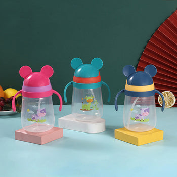 Shishe plastike për fëmijë, me hapje dhe doreza anësore