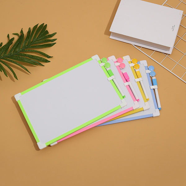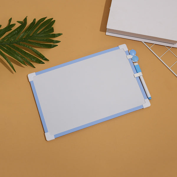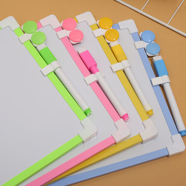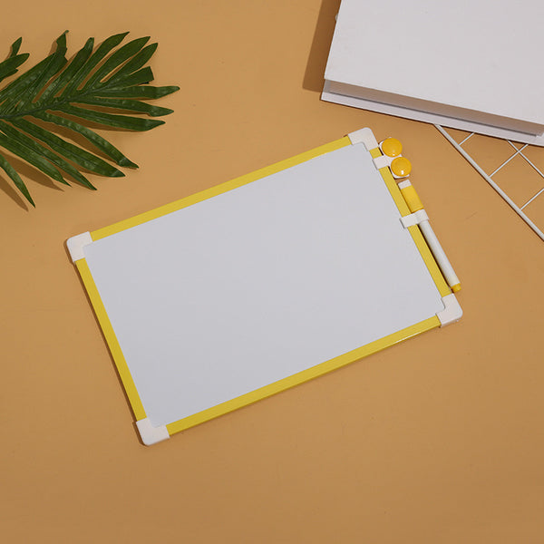 Tabelë e bardhë me kornizë druri, lapustilë, fshirëse dhe ngjyra; Me dy anë; 25 cm x 35 cm