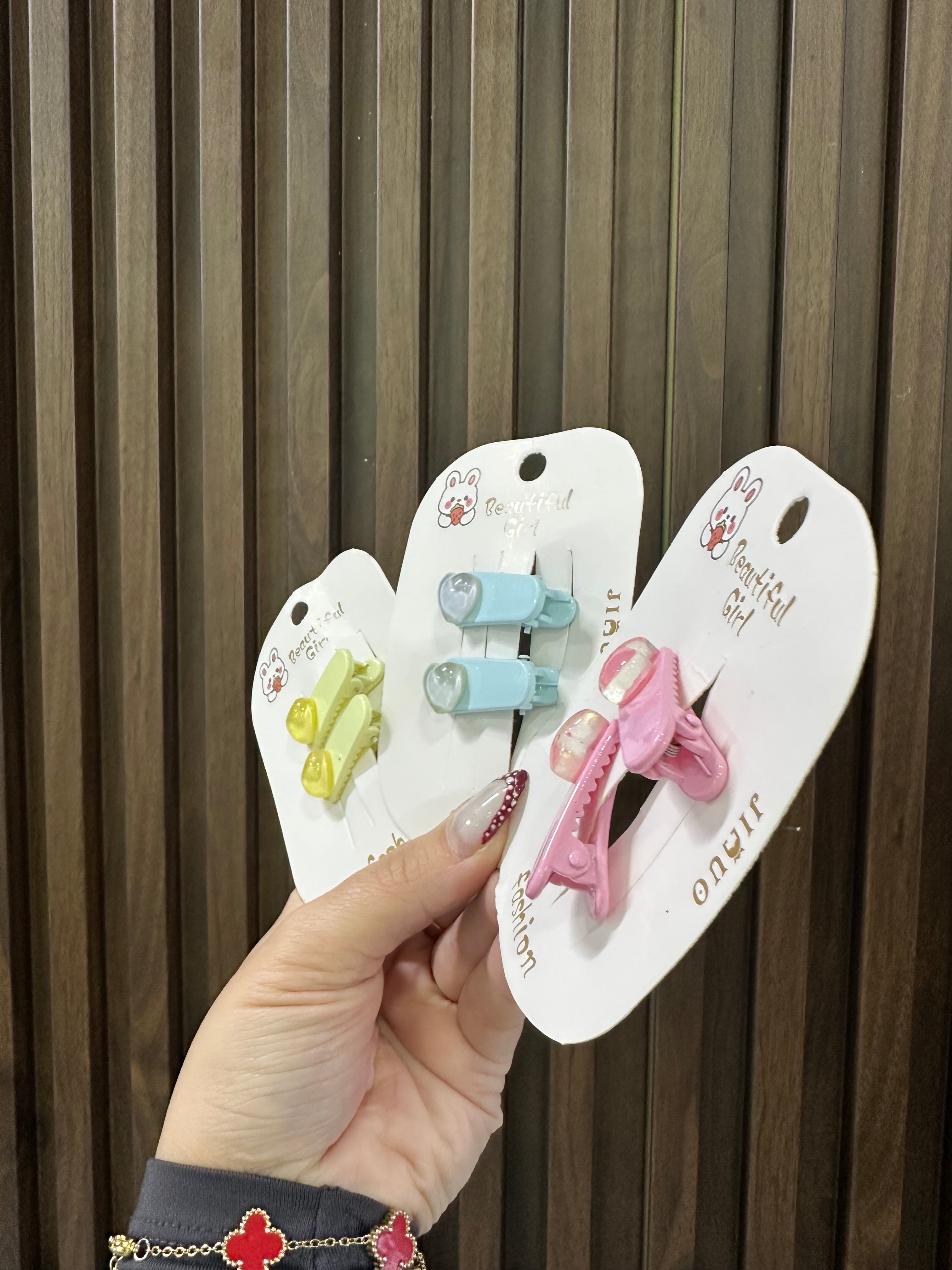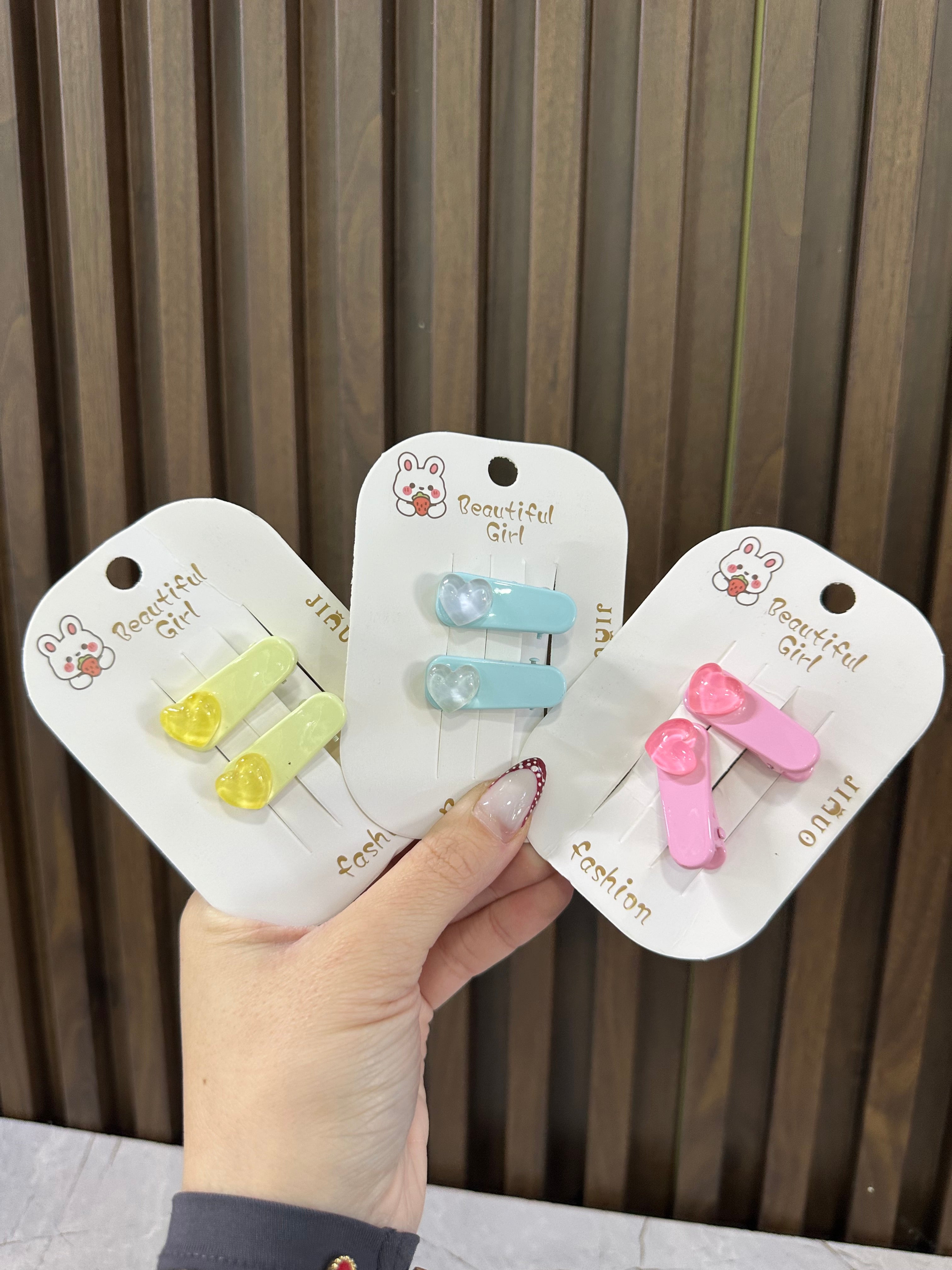 Set kapësesh flokësh me dizajn zemre në ngjyra pastel. Të lehta, të buta dhe ideale për vajza me stil të ëmbël.