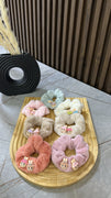 Aksesorë flokësh me figurina të vogla pelushi në ngjyrë rozë dhe blu.