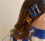 Kapëse flokësh me flutur blu dhe varëse perlash dekorative.