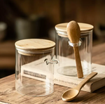 Materiali: Qelq rezistent dhe i sigurtë për ushqime + kapk druri hermetik. Përmasa: 9*15cm. Përdorimi: Ideale për ruajtjen e kafesë, cajit, sheqerit. Dizajn elegant & praktik.