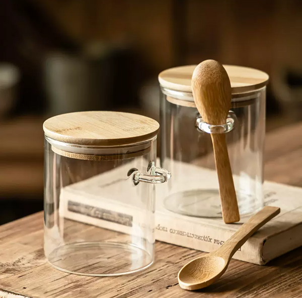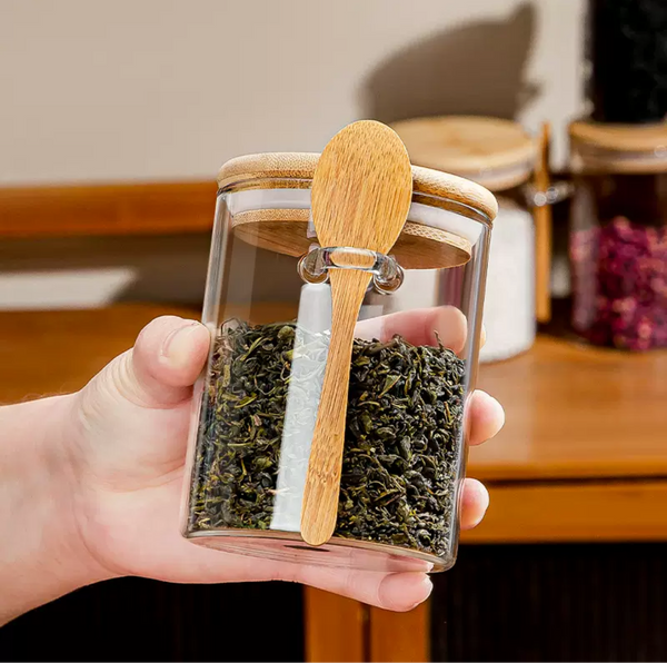 Material premium: Qelq i trashë rezistent + kapak bambuje për ruajtjen hermetike.