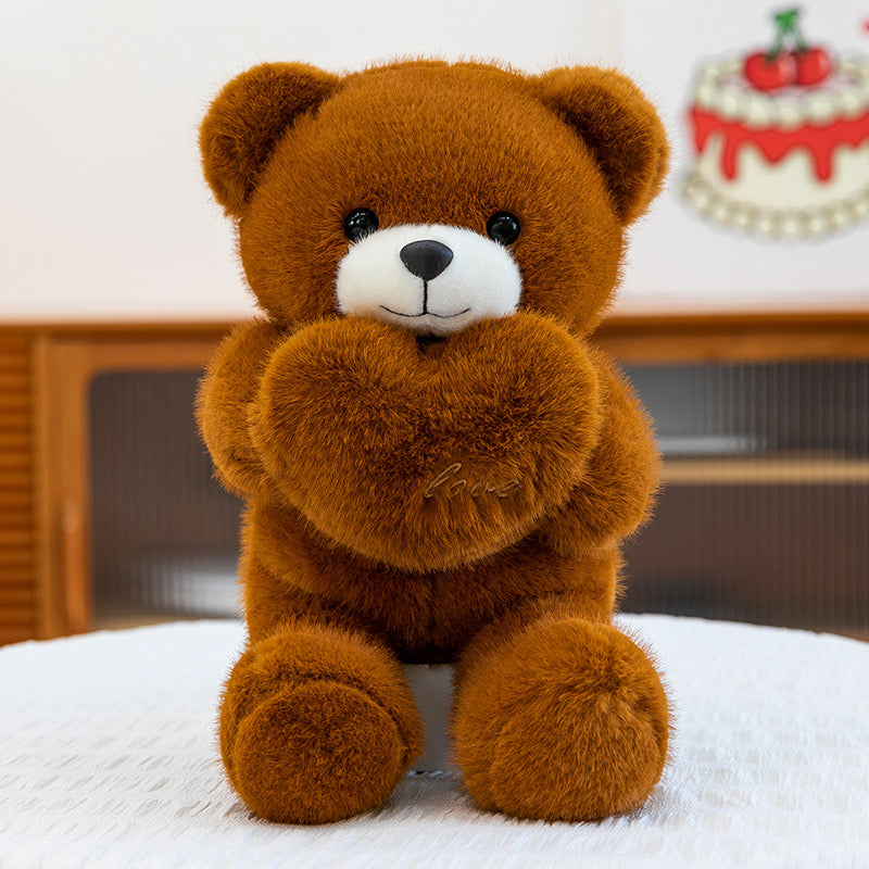 Arush pellushi me zemer "Love" i kuq e kaf si ngjyrë me përmasë 20 cm