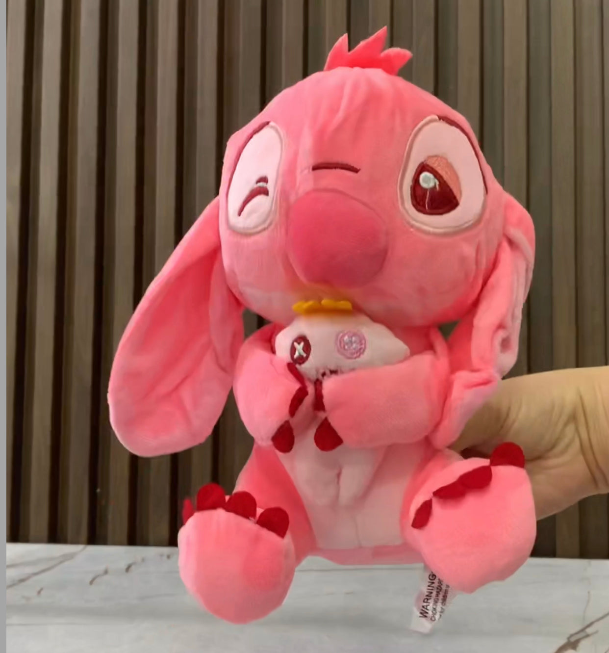 Lodër pellushi Stitch në ngjyrën blu e rozë, me bebe në duar me përmasë 20 cm