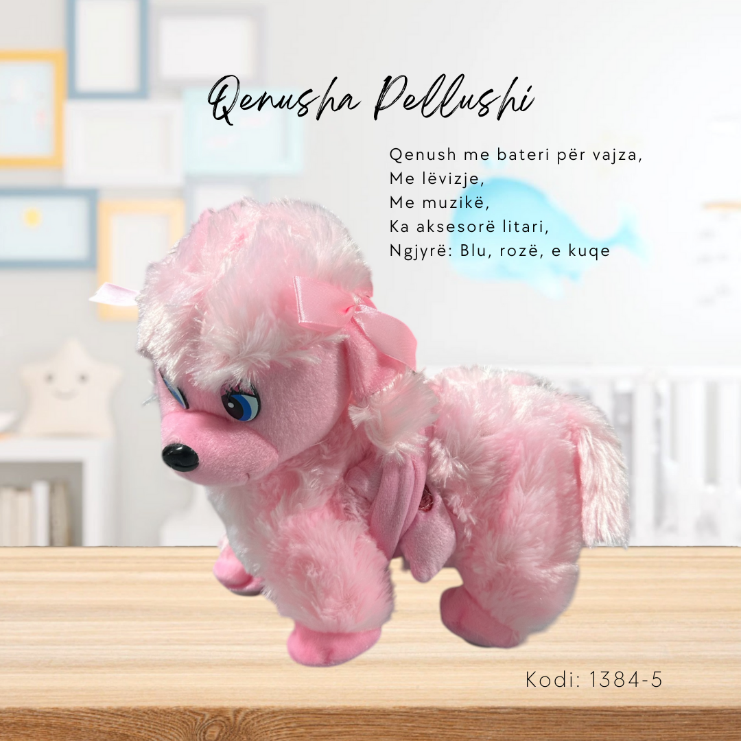 Qenush me bateri për vajza, ; Me lëvizje,; Me muzikë, ; Ka aksesorë litari,; Ngjyrë: Blu, rozë, e kuqe; Përmasat: 24*19.5cm
