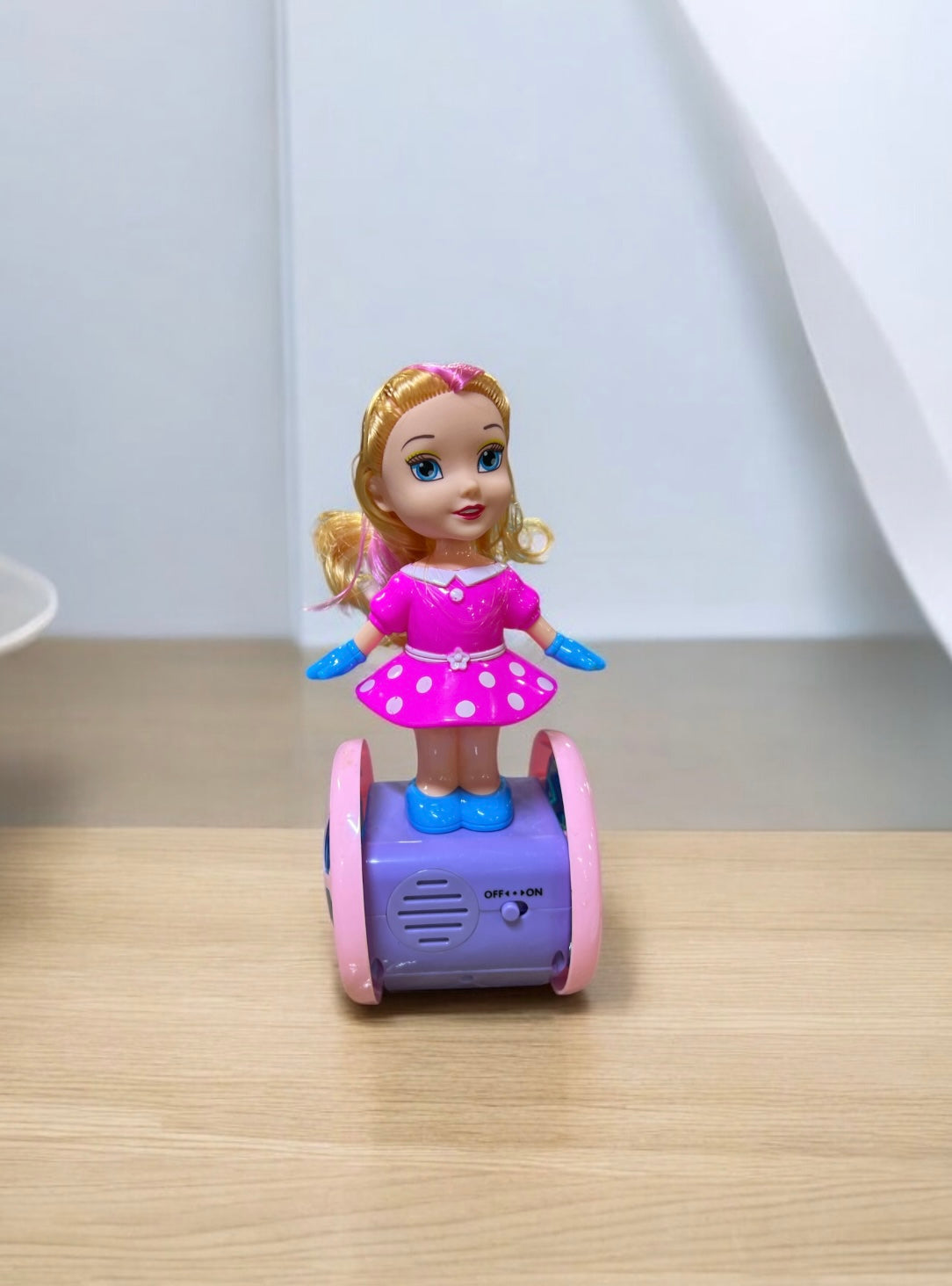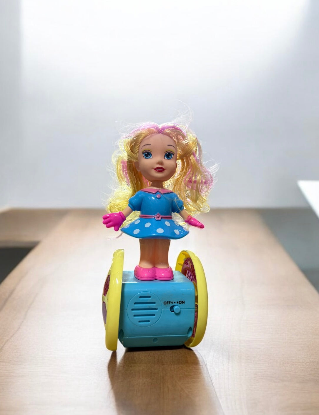 🌼Vajza kukull eshte e vendosur mbi nje platforme me dy rrota (qe quhet hoverboard), qe ben levizje rrotulluese 360 grade e shoqeruar me drita dhe muzike argetuese.