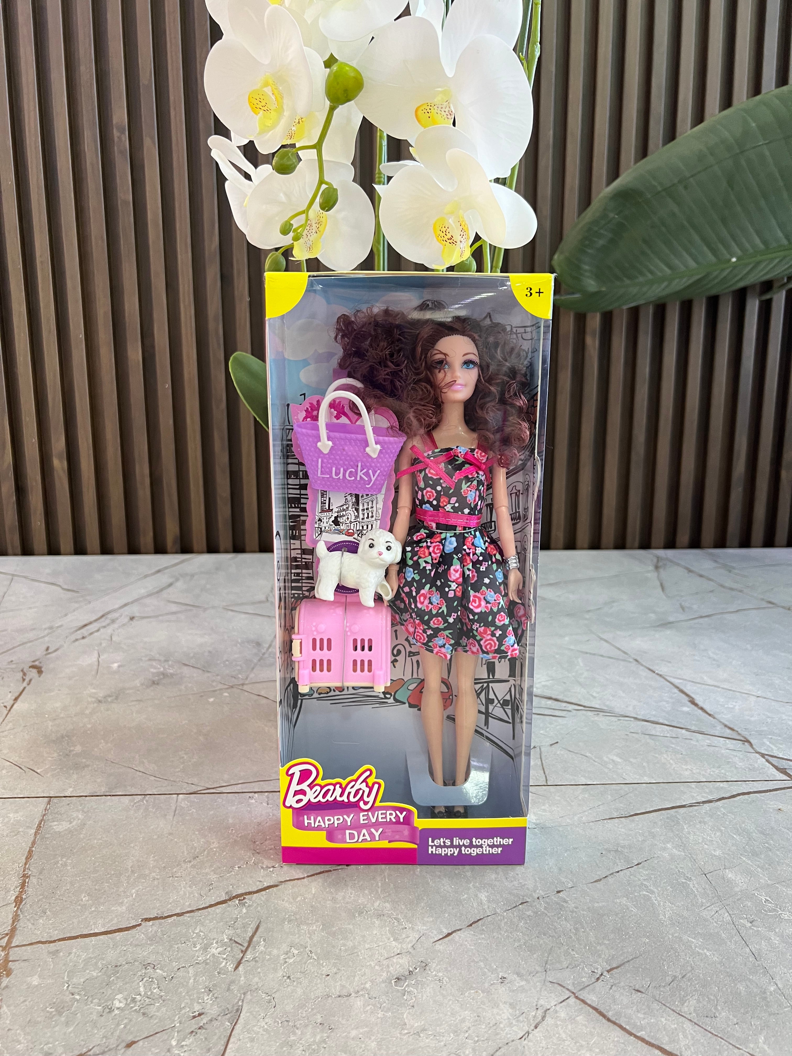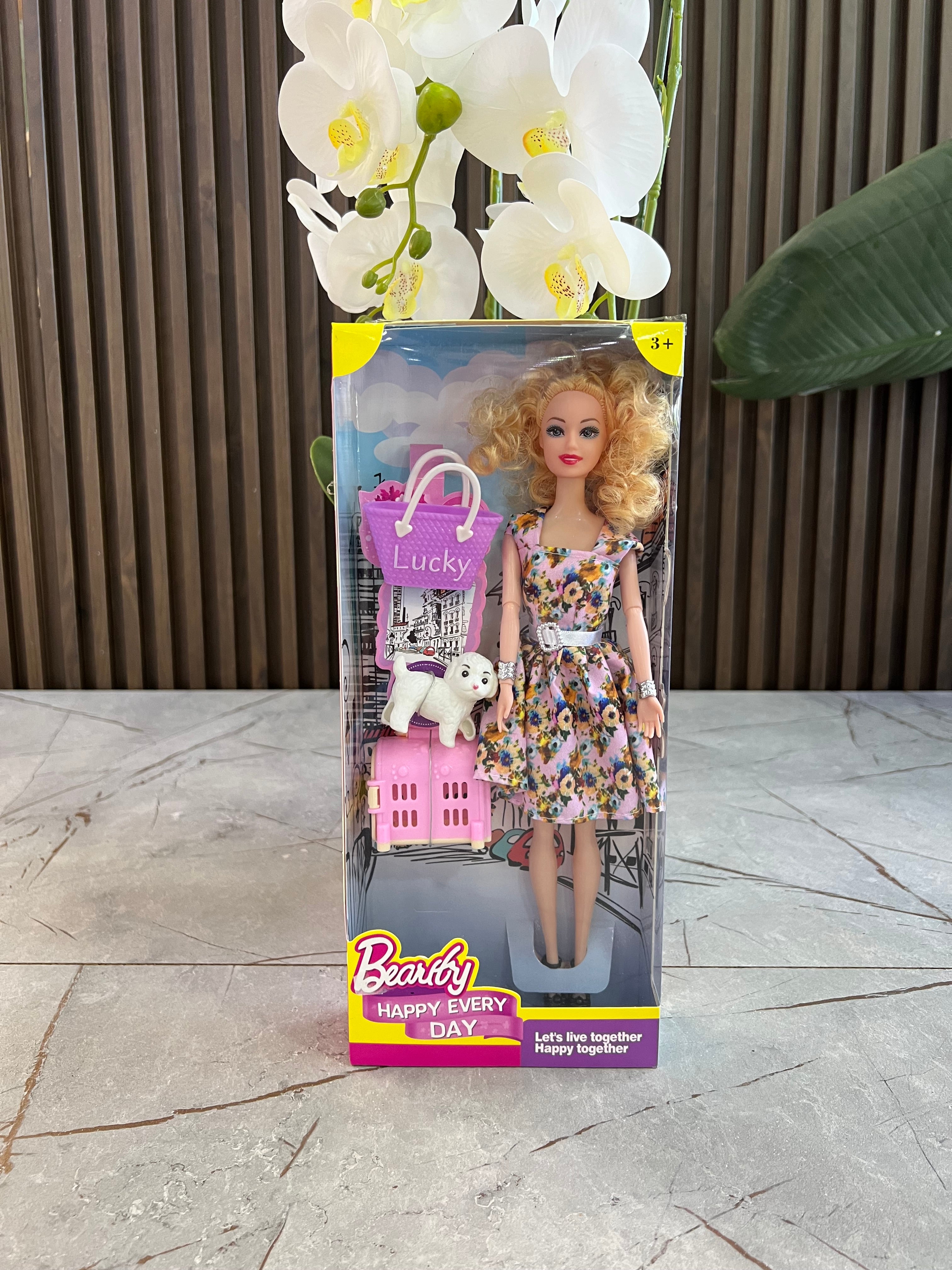 Vajza shetitje me qenushin e saj, Barby Happy Every Day