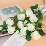 Degë artificiale trëndafili me 3 koka, elegante dhe e detajuar, ideale për dekorimin e tavolinave, raftave ose dhomave, pa nevojë për kujdes shtesë.
