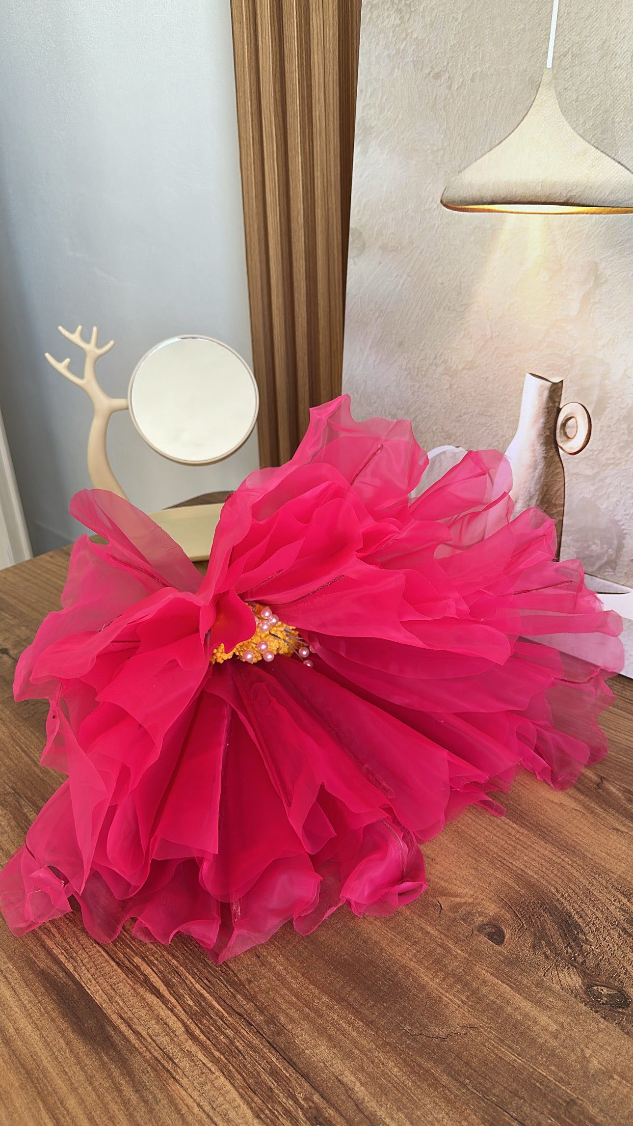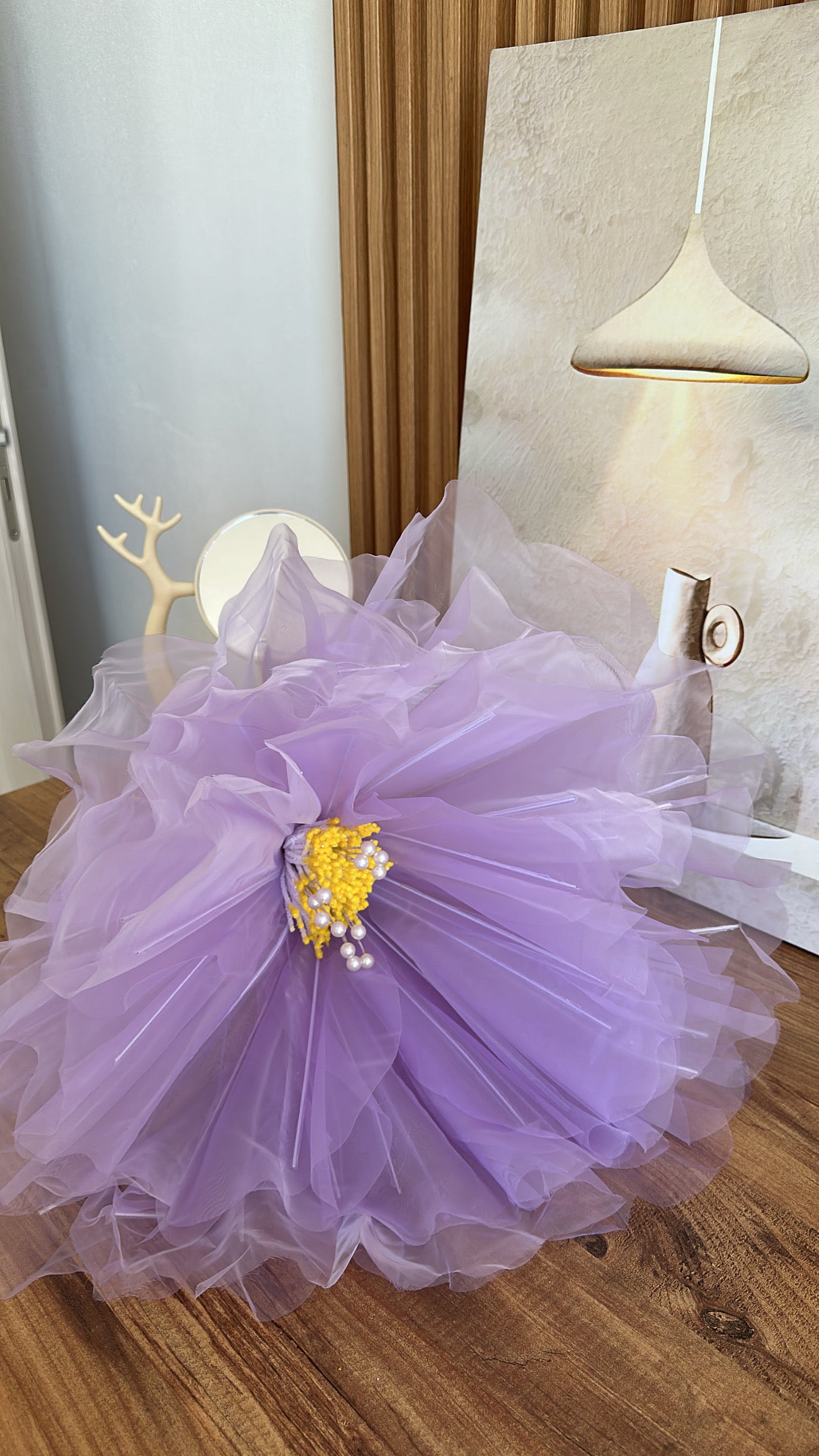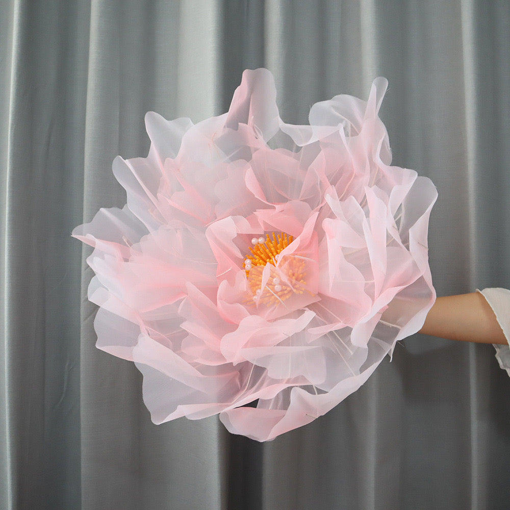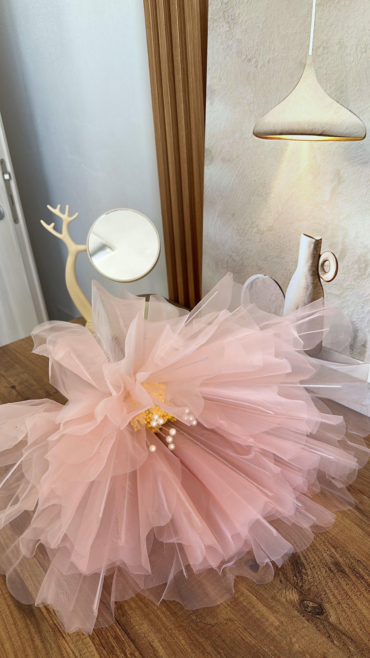 Lule dekorative artificiale me petale të mëdha, e punuar me material të lehtë dhe të butë që i jep pamje elegante dhe voluminoze. Në qendër ka detaje zbukuruese me ngjyrë të artë dhe perla të vogla, duke i shtuar një prekje luksi. Ideale për dekorime ambientesh, evente festive apo si aksesor në arredimin e shtëpisë. 🌸