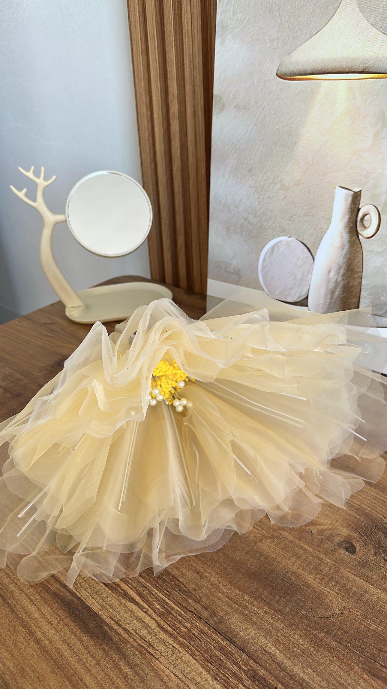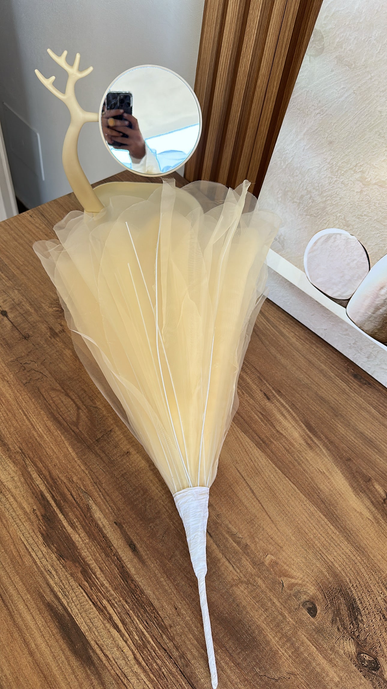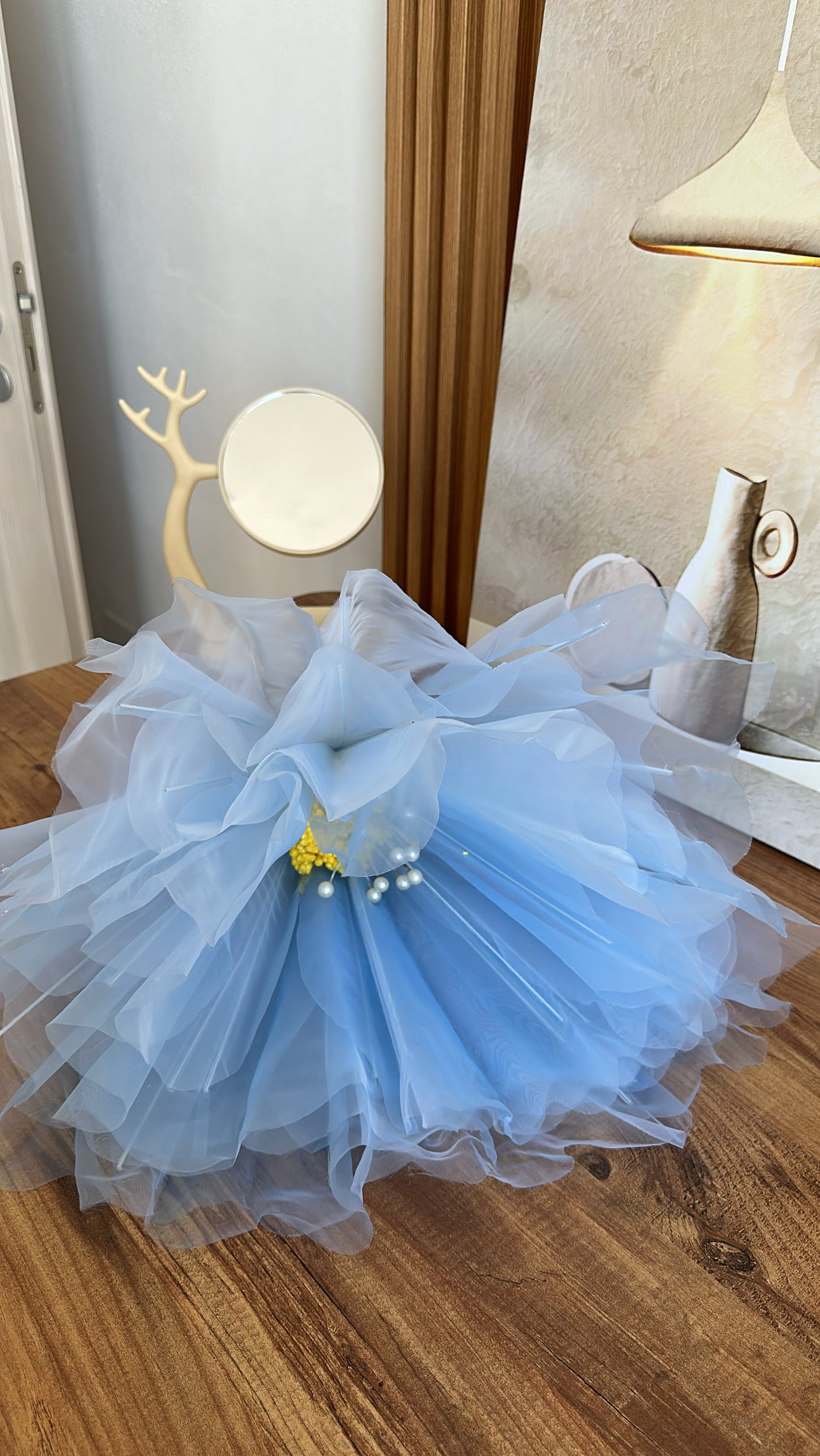 Lule dekorative artificiale me petale të mëdha, e punuar me material të lehtë dhe të butë që i jep pamje elegante dhe voluminoze. Në qendër ka detaje zbukuruese me ngjyrë të artë dhe perla të vogla, duke i shtuar një prekje luksi. Ideale për dekorime ambientesh, evente festive apo si aksesor në arredimin e shtëpisë. 🌸