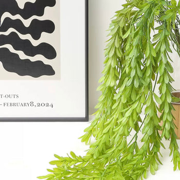 Degë artificiale me lule të varura jeshile me gjethe të dhëmbëzuara