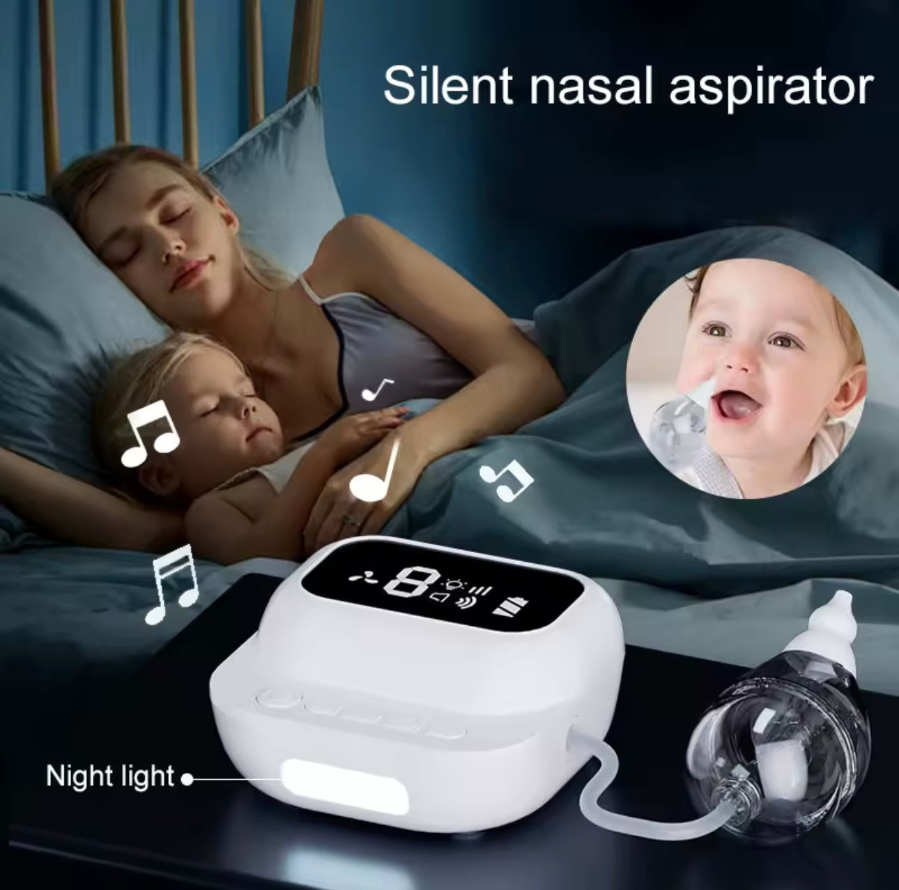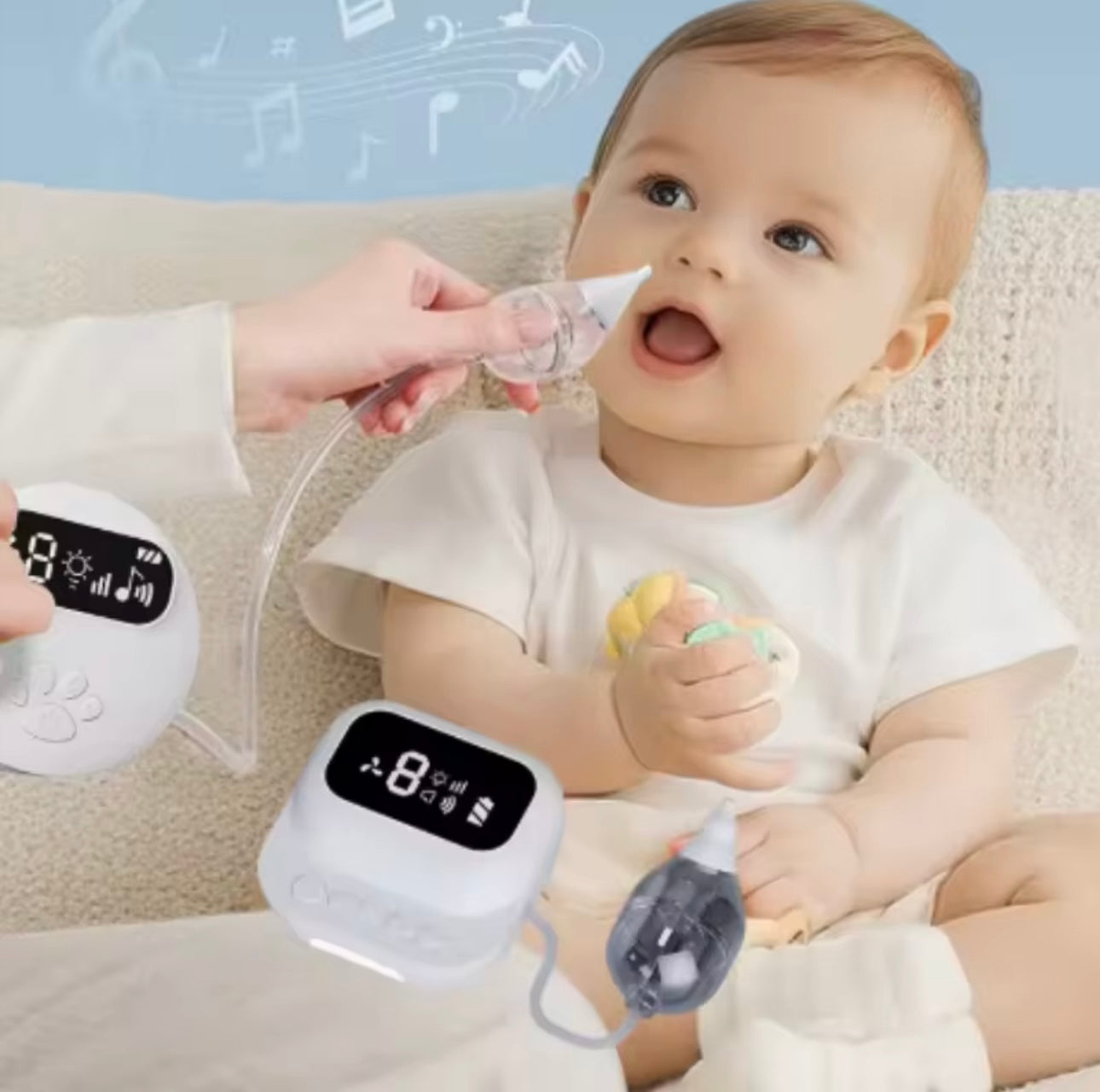 Aspirator hunde elektrik për bebe me thithje të rregullueshme, i sigurt dhe i butë, ndihmon në pastrimin e hundës shpejt dhe lehtë.