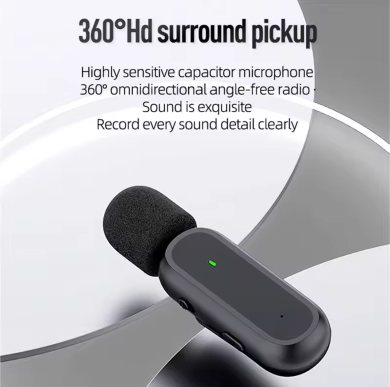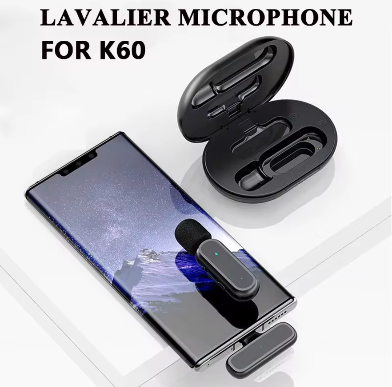 Mikrofon wireless Lavalier K60, ideal për video, intervista dhe live. Siguron zë të pastër, distancë transmetimi të gjerë dhe kasë karikimi praktike për përdorim të përditshëm.