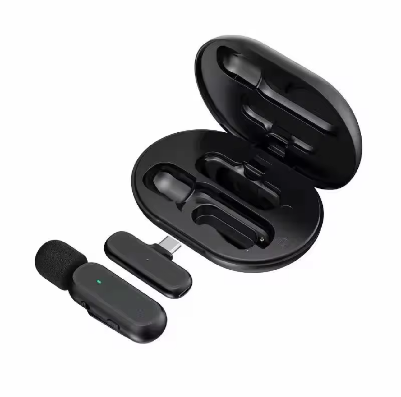 Mikrofon wireless lavalier me kasë karikimi, për video, intervista dhe live