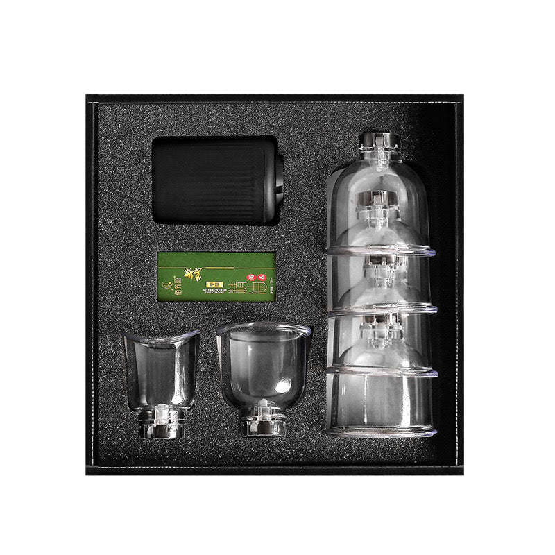 Seti permban 6 kupa dhe pompen elektrike.