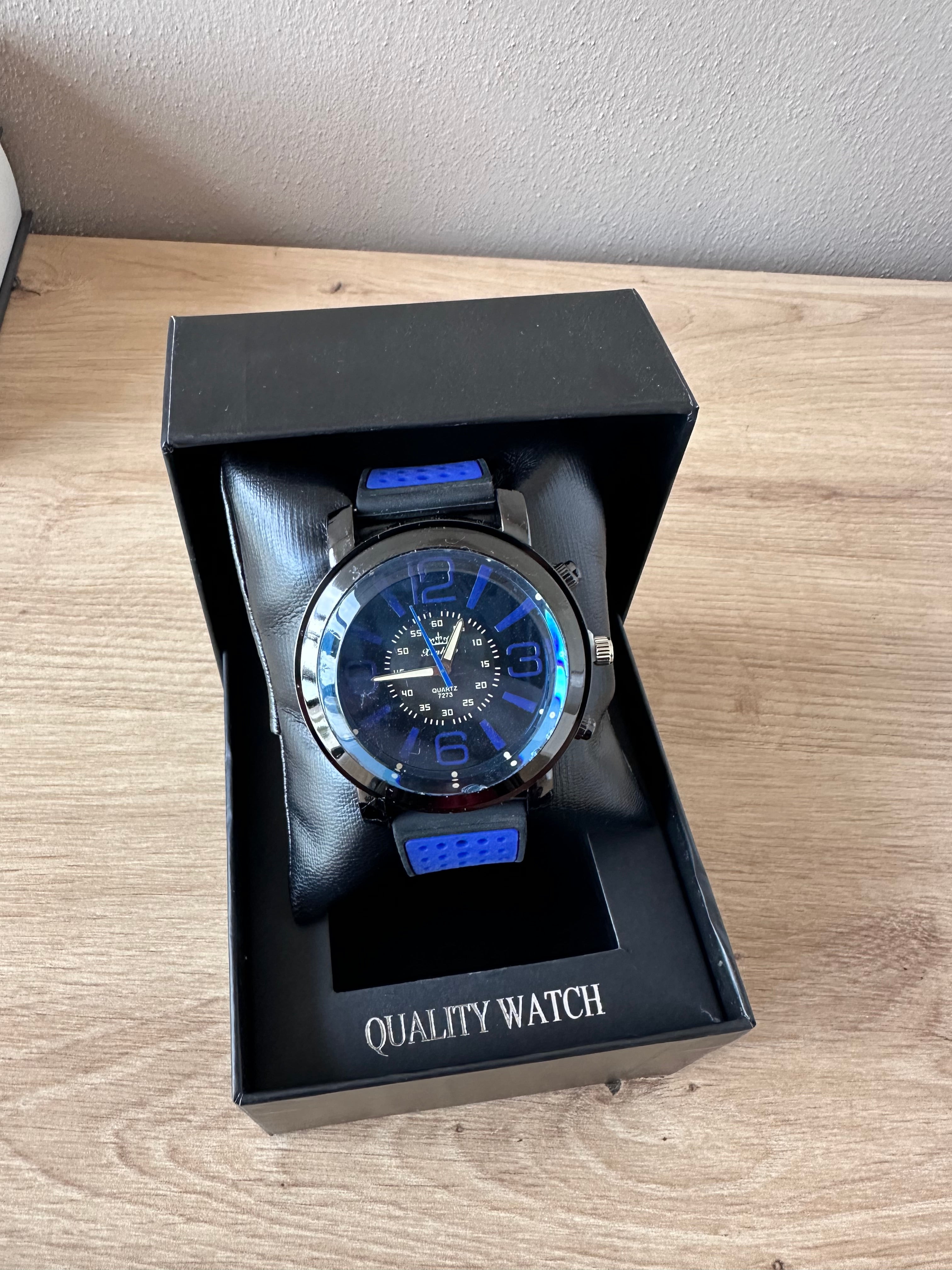Orë për meshkuj ngjyrë blu me rrip silikoni e material Quartz