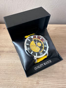 Orë për meshkuj rose gold me rrip të zi imitim lëkure e detaje kafe