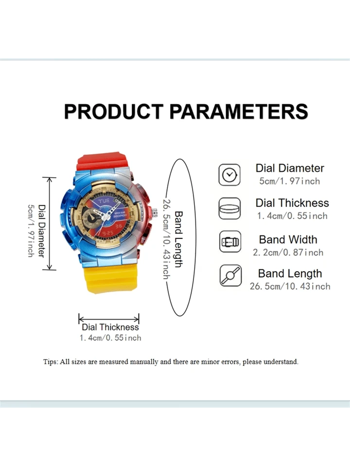Orë sportive me mbrojtje ndaj ujit material Quartz dhe rrip silikoni; Xham sintetik; Elektronike; Ngjyra: E zezë me gold; E kuqe shumëngjyrëshe
