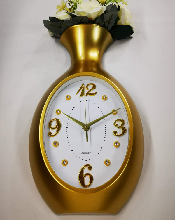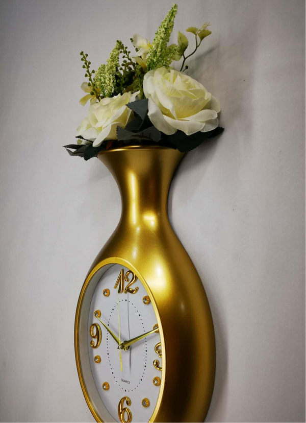 Orë dekorative në formë vazo lulesh; Materiali: PVC; Ngjyrat: Gold, e bardhë; Përmasa: 30 xm x 60 cm