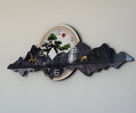 Orë muri qelqi me ndriçim LED me dy rrathë, njëra me orë me drerë dhe peshq dhe tjetra me pamje mali ideale për dekor restoranti, zyre apo shtëpie