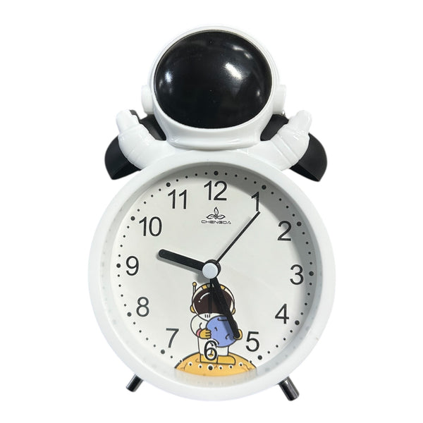 Orë me zile në formë austronauti; Përmasa: 15 cm; Ngjyra: E zezë, silver, gold; Materiali: Plastike