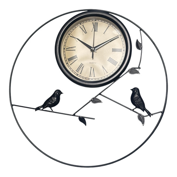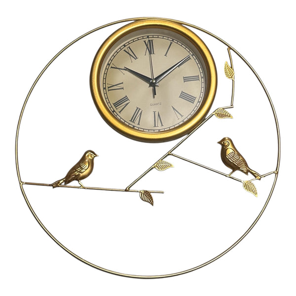 Orë murale me degë dhe zogj stil klasik; Ngjyrat: E zezë, gold; Përmasa: 45 cm; Materiali: Metal
