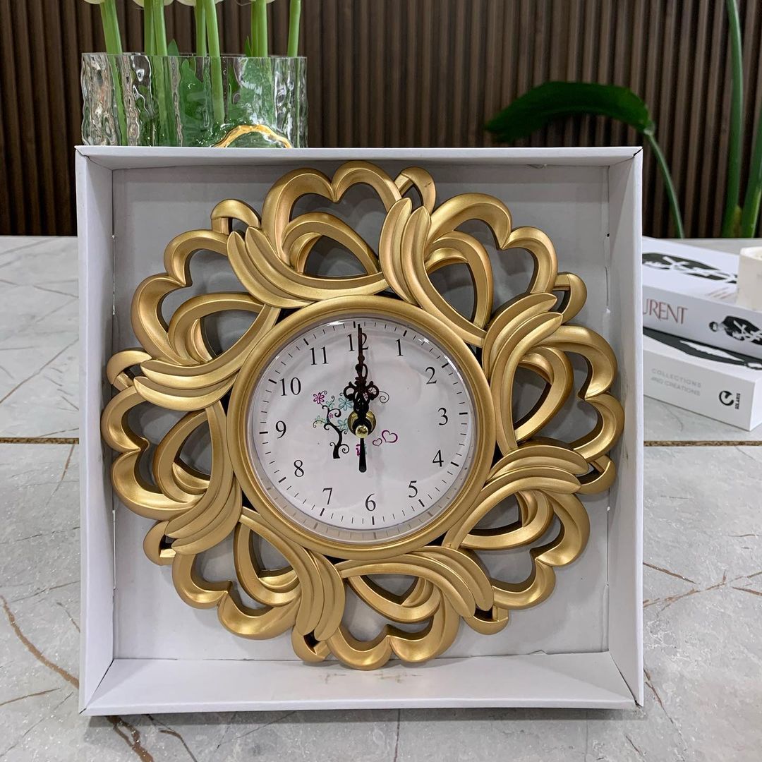 Orë muri rrethore dekorative gold, me vija dhe konture të punuar me diametër 35 cm