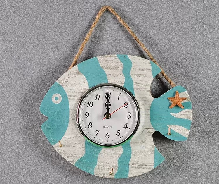 Orë muri dekorative në formë peshku, ideale për ambientet e shtëpisë ose hapësira me stil detar.