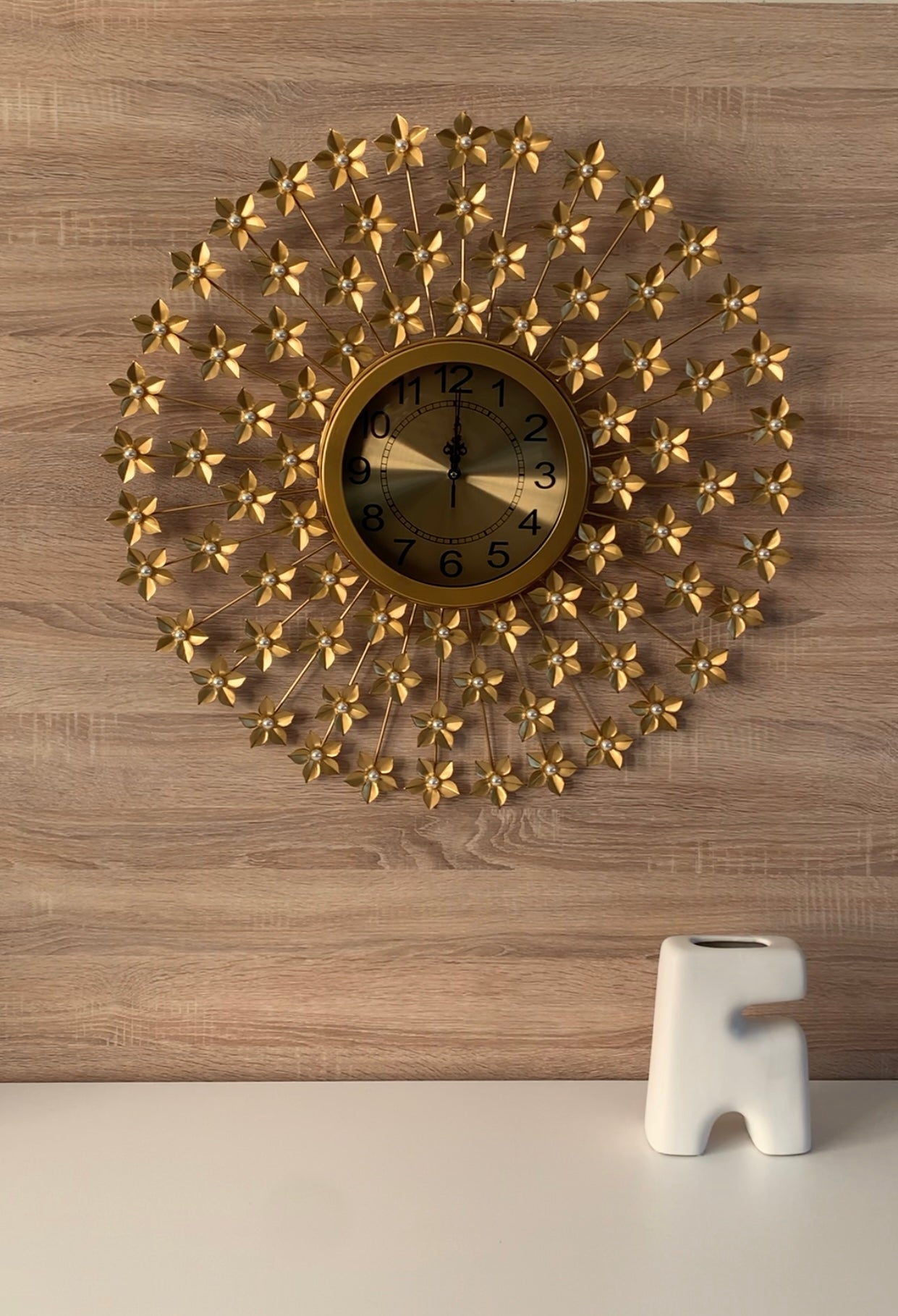 Specifikim Materiali: metalik Ngjyra: gold Diametri: 70cm Diametri i orës: 27cm