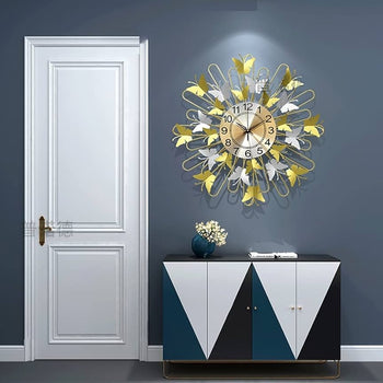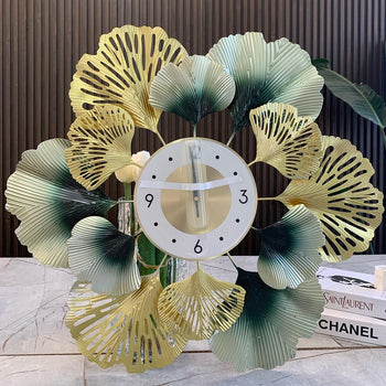 Orë murale dekorative ngjyrë gold me detaje jeshile