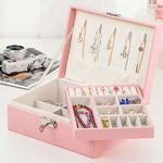 Kuti organizuese për bizhuteri me hapësirë për varëse, unaza, byrzylyk; Me dy hapësira organizimi; Ngjyra: E bardhë, rozë, gri; 23 cm x 17 cm x 9 cm