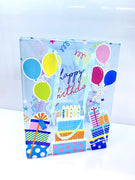 Çantë paketimi transparente "Happy birthday" me qirinj dhe yje