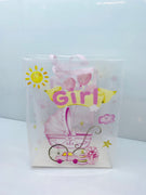 Çantë paketimi transparente "Happy birthday" me dhurata, tortë dhe tullumbace