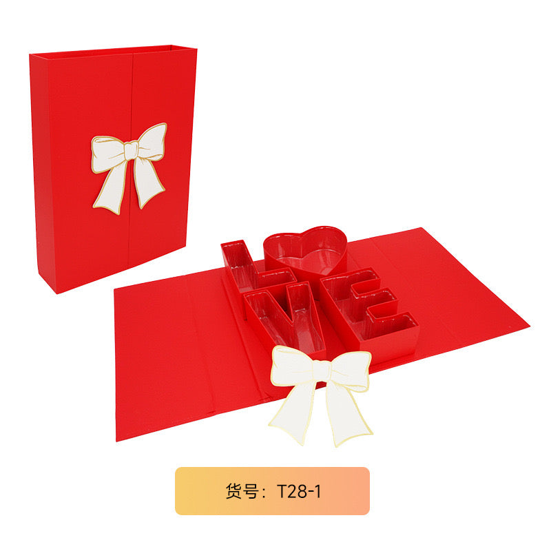Kuti dhuratash “LOVE” me formë zemre dhe fjongo dekorative, për surpriza romantike