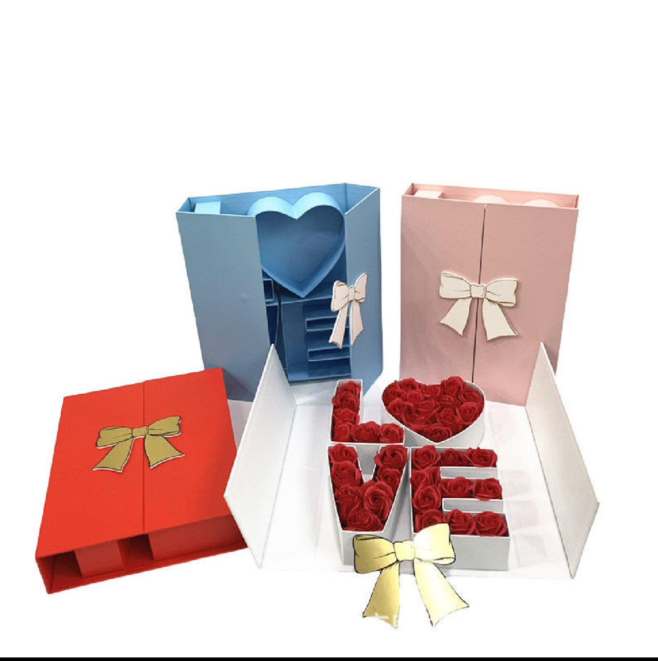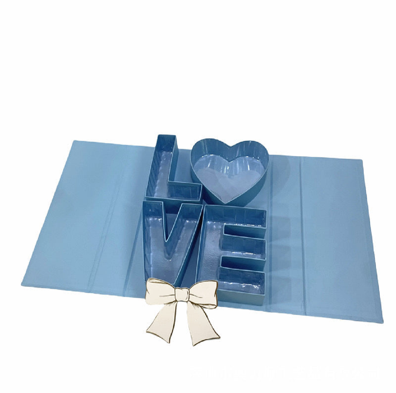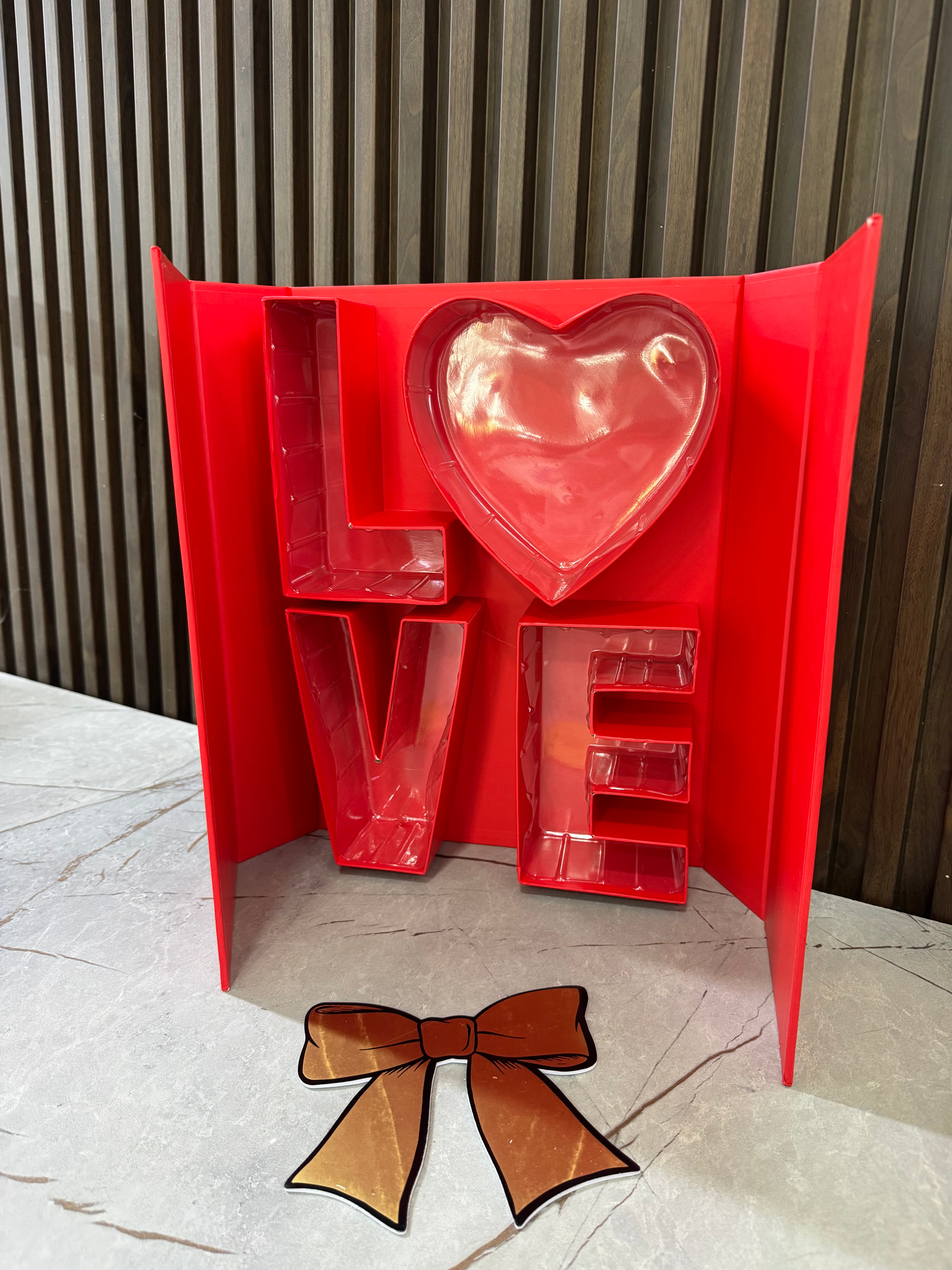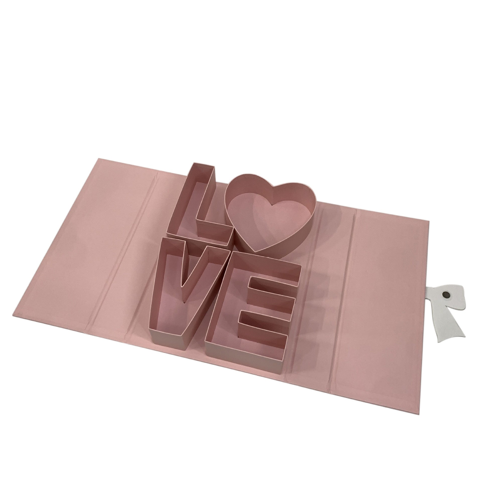 Kuti dhuratash “LOVE” me formë zemre dhe fjongo dekorative. E veçantë dhe e bukur, ideale për lule, dhurata apo surpriza romantike.