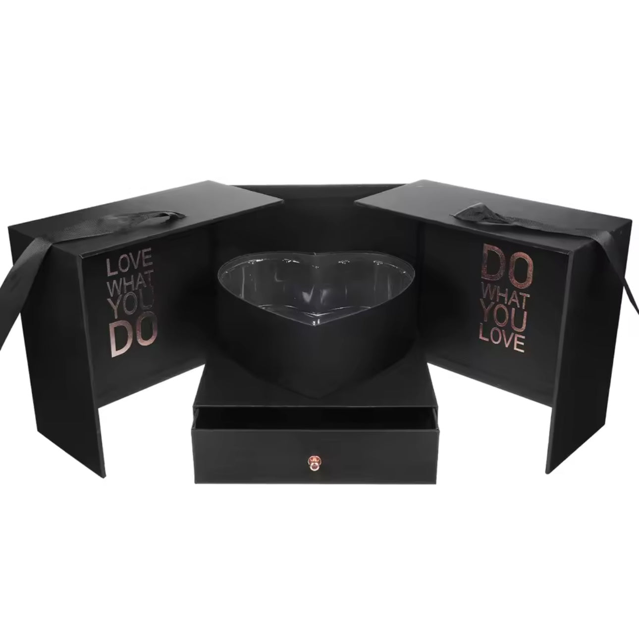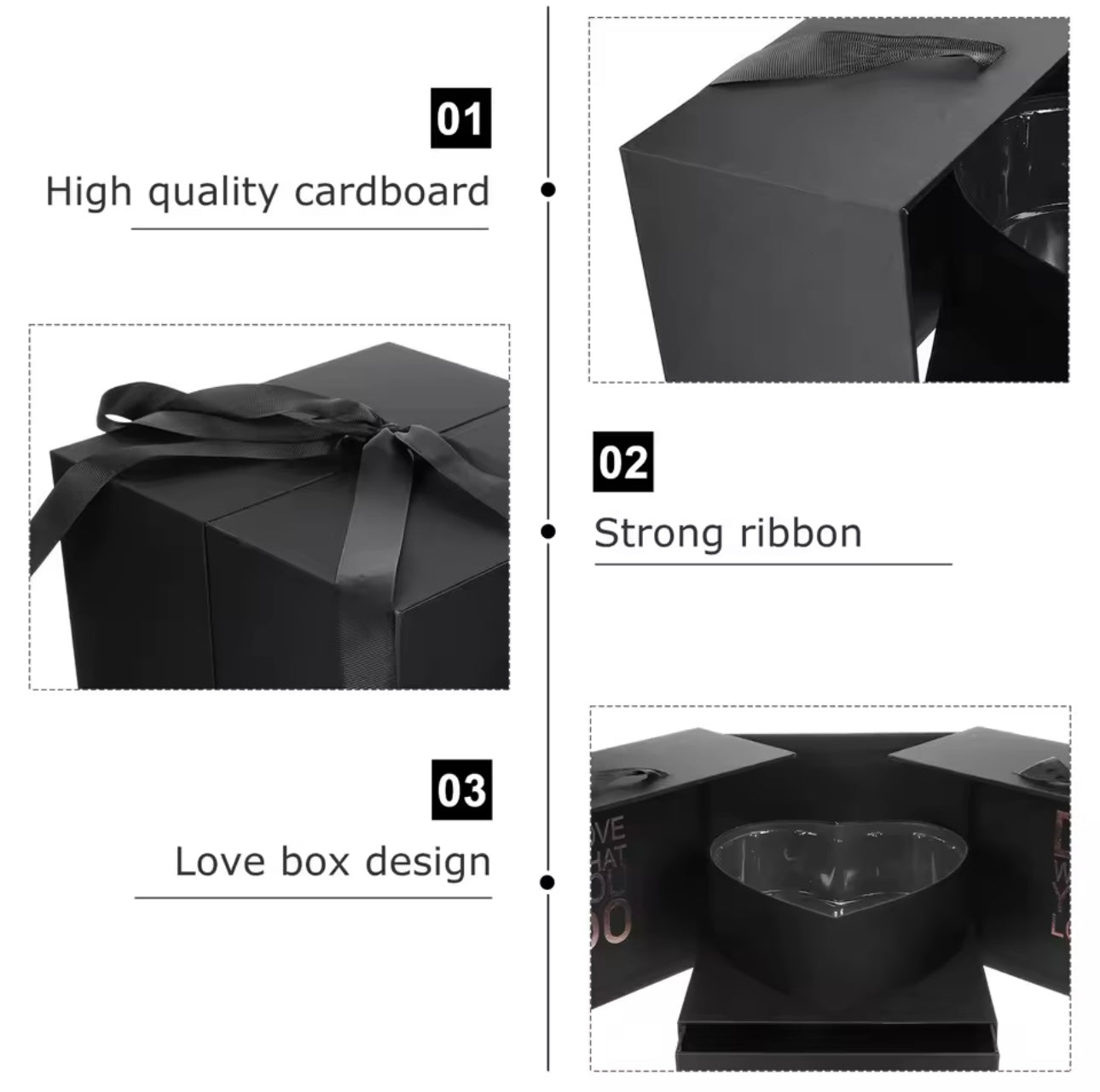Kuti dhuratash me formë zemre dhe sirtar, dizajn “Love What You Do”. Praktike dhe ideale për lule apo surpriza romantike. Përmasa: (24.2x24.2xH22cm). Ngjyrat: E rozë, e kuqe, e zezë, Përdorimi:...