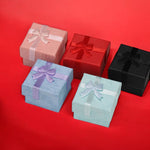 Kuti e vogël për bizhuteri me fjongo me pika; Ngjyrat: Rozë, e kuqe, krem, lejla, kafe, e zezë; Përmasat: 5 cm x 3.5 cm