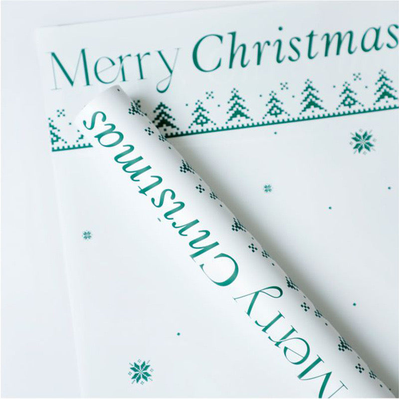 Letër paketimi “Merry Christmas” me dizajn festiv me pemë dhe flokë bore. E disponueshme në ngjyra të ndryshme si e kuqe, jeshile dhe e bardhë, kjo letër është perfekte për...