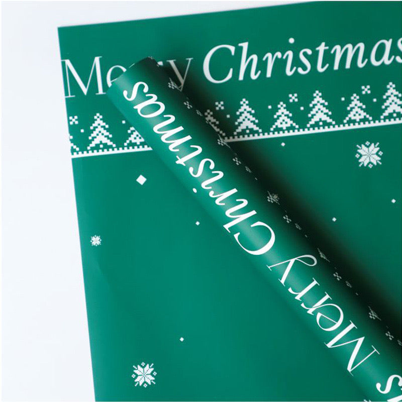 Letër paketimi “Merry Christmas” me dizajn festiv me pemë dhe flokë bore. E disponueshme në ngjyra të ndryshme si e kuqe, jeshile dhe e bardhë, kjo letër është perfekte për paketimin e dhuratave të fundvitit. Material cilësor, me shkëlqim dhe tematikë që sjell atmosferën e ngrohtë të festave.
