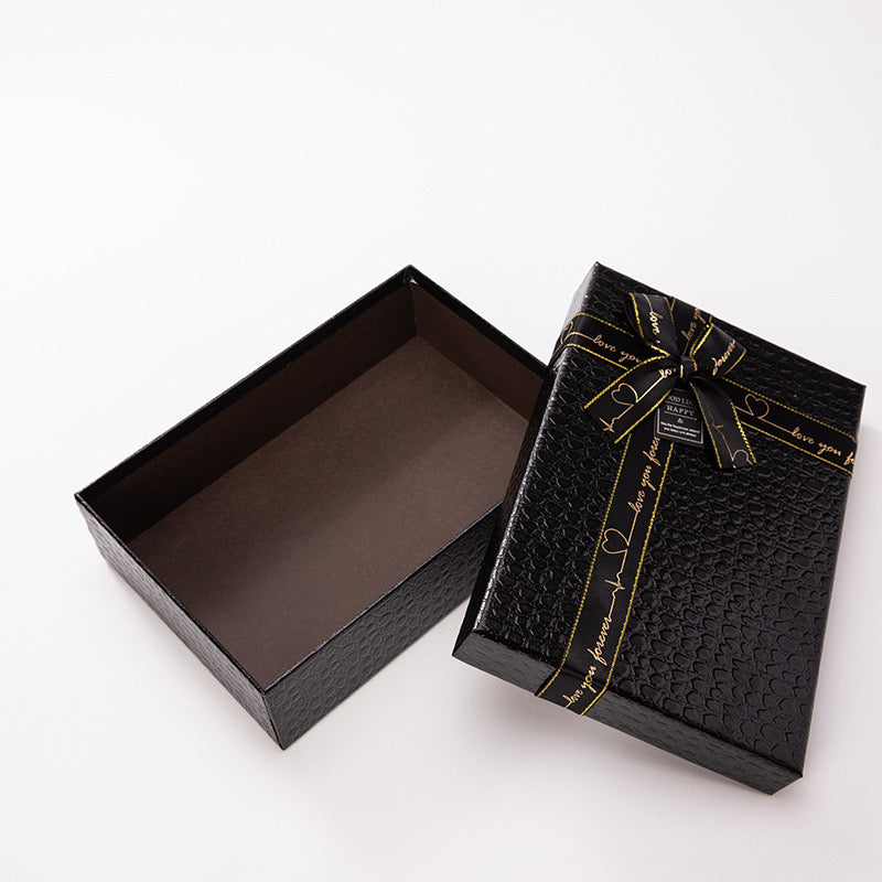 Kuti dhuratash me dizajn të thjeshtë, e punuar nga material kartoni i qëndrueshëm, me dritare transparente për një paraqitje të përmbajtjes. Ngjyrat: Zezë, kuqe, pudër, bardhë. Përmasa: 25 x 9.5...