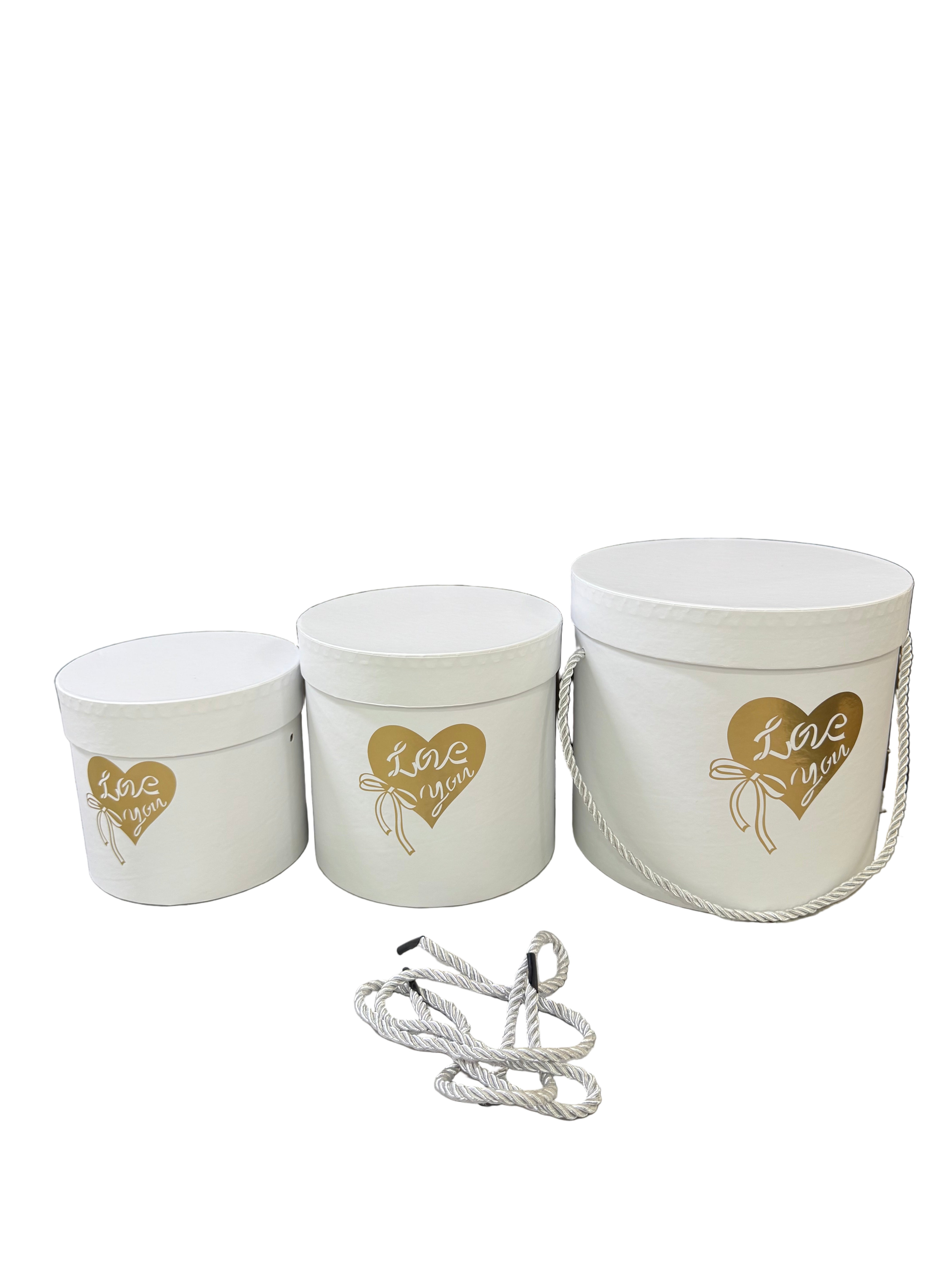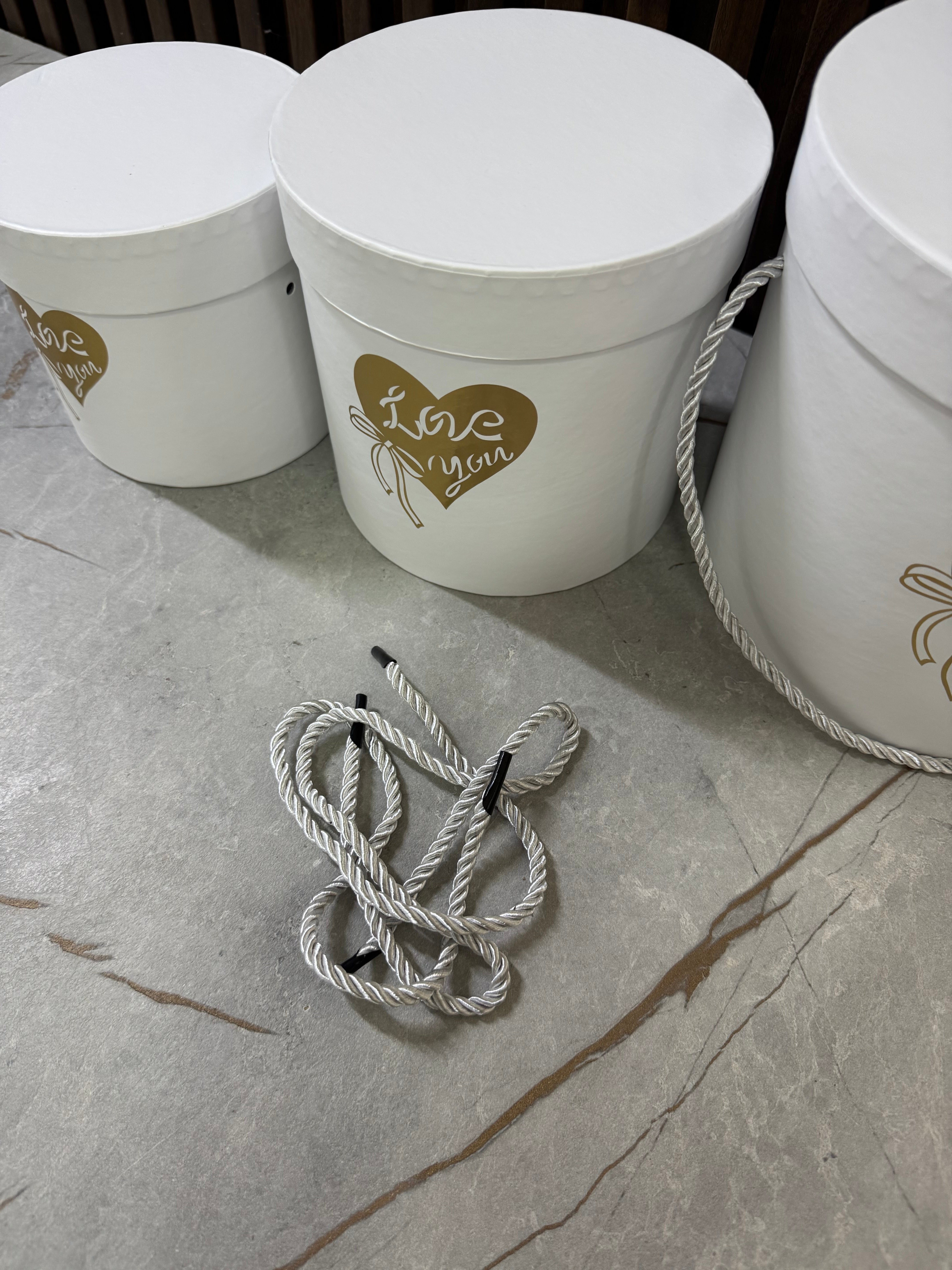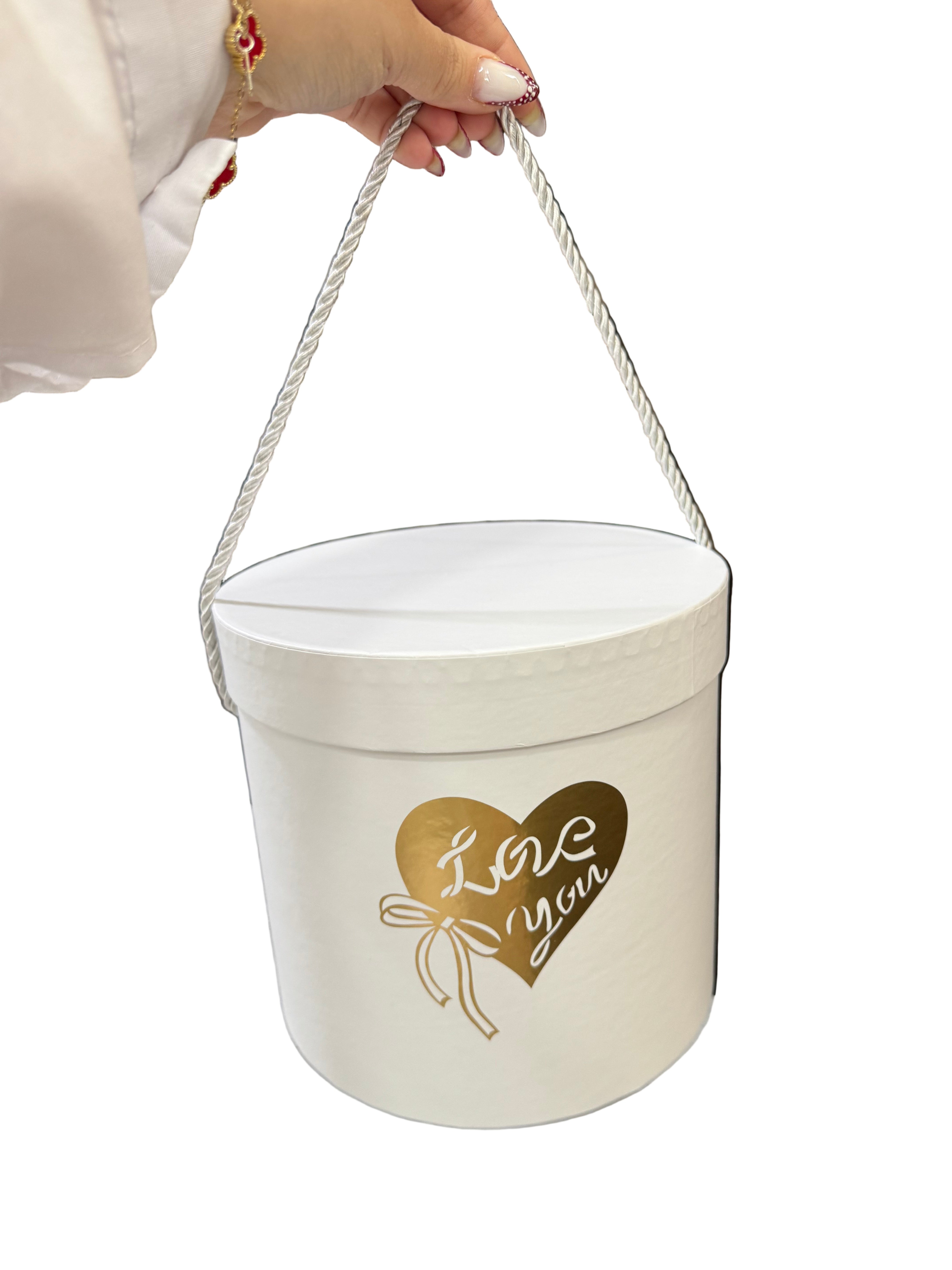 Set kutish cilindrike “Love You”, ideale për lule, dhurata apo surpriza romantike. Dizajn i thjeshtë dhe praktik për çdo rast special.
