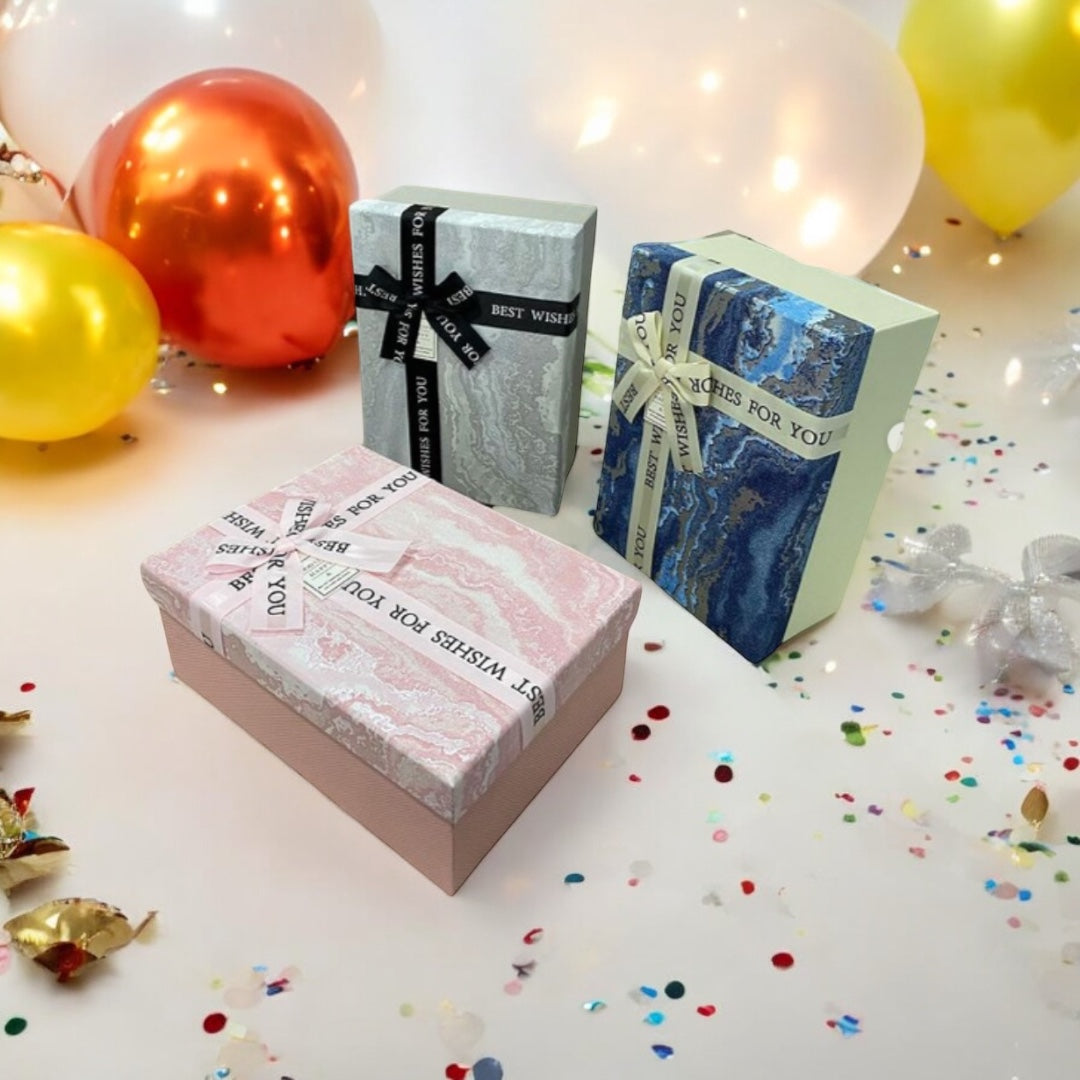 Set me 3 kuti paketimi me fjongo “Best wishes to you” dhe dizenjo valëzimesh