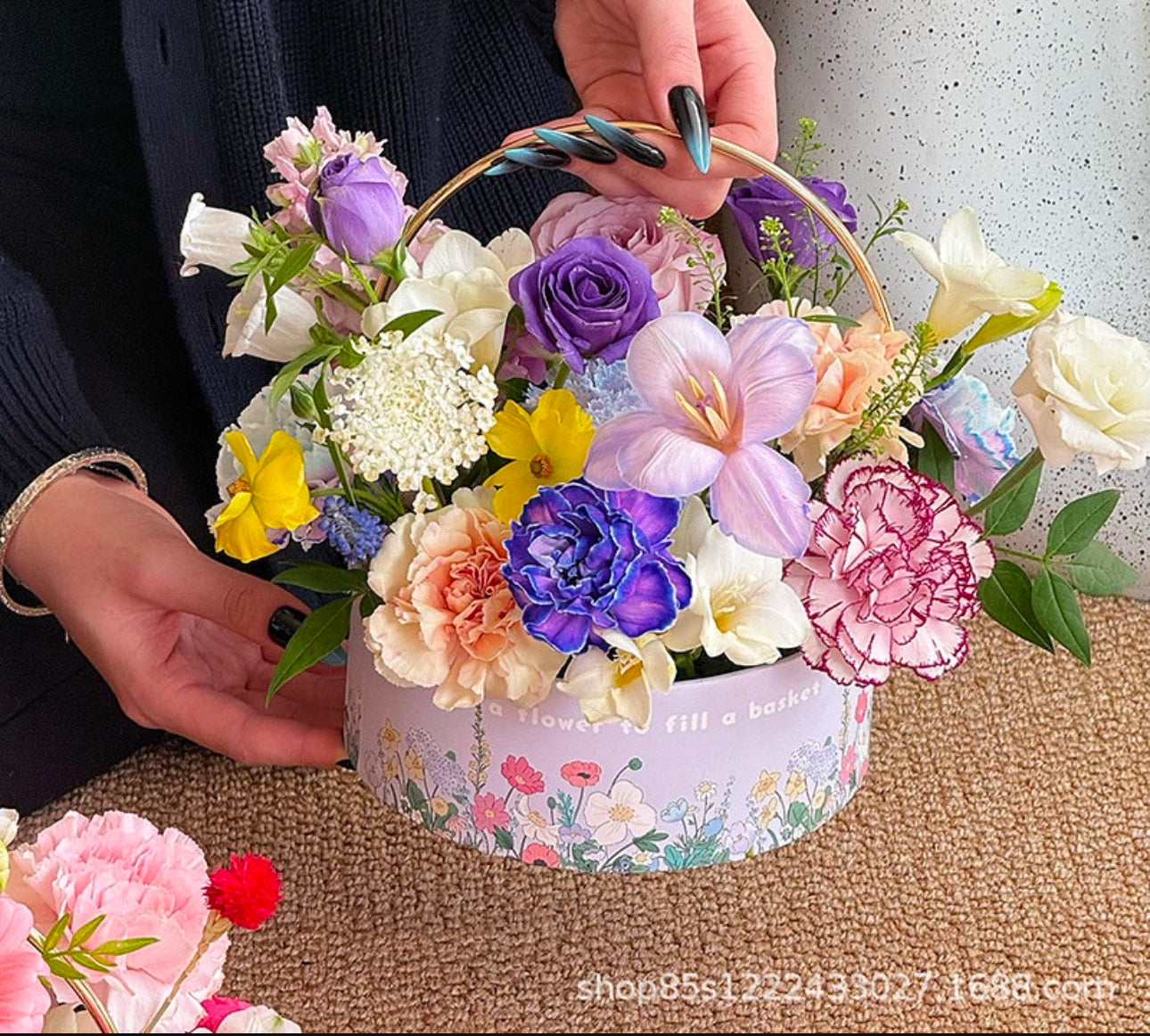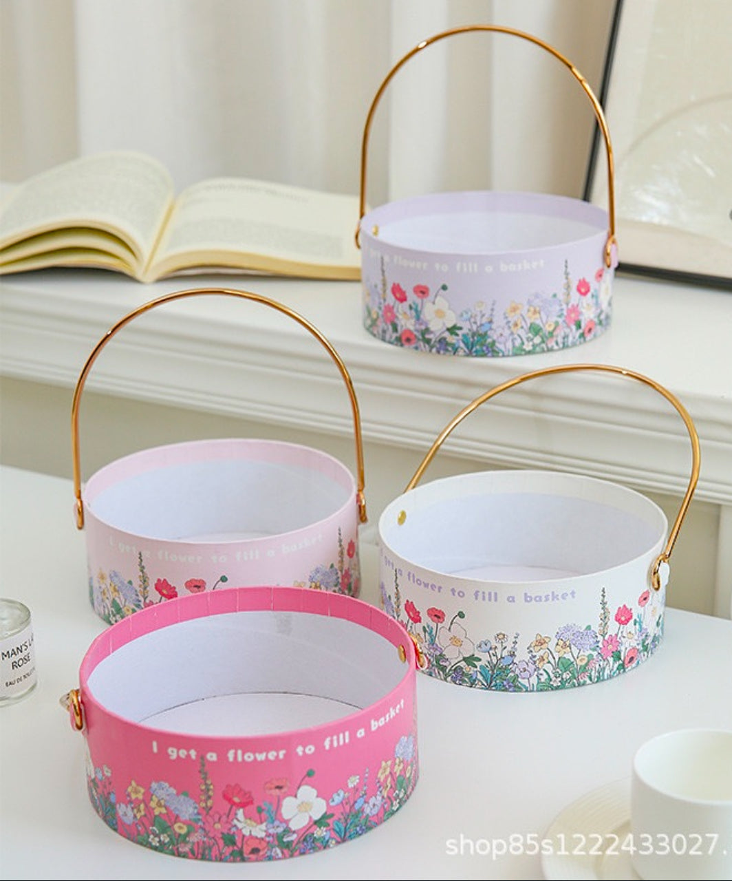 Shportë kartoni me lule të pikturuara me dorezë gold për mini kompozime me lule✨