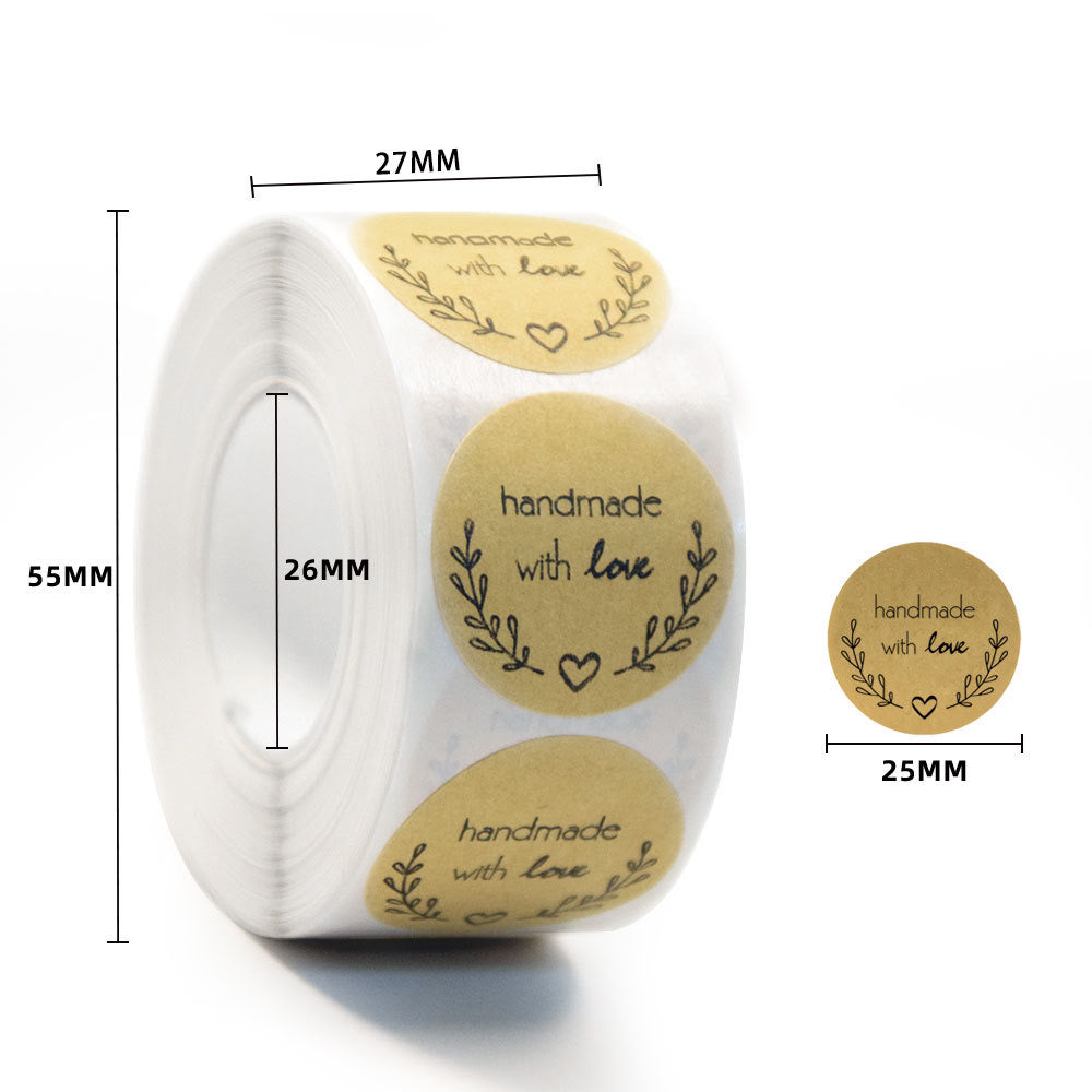 Stiker për paketime dhuratash me shkrim “Handmade with love”; Përmasat si në foto: