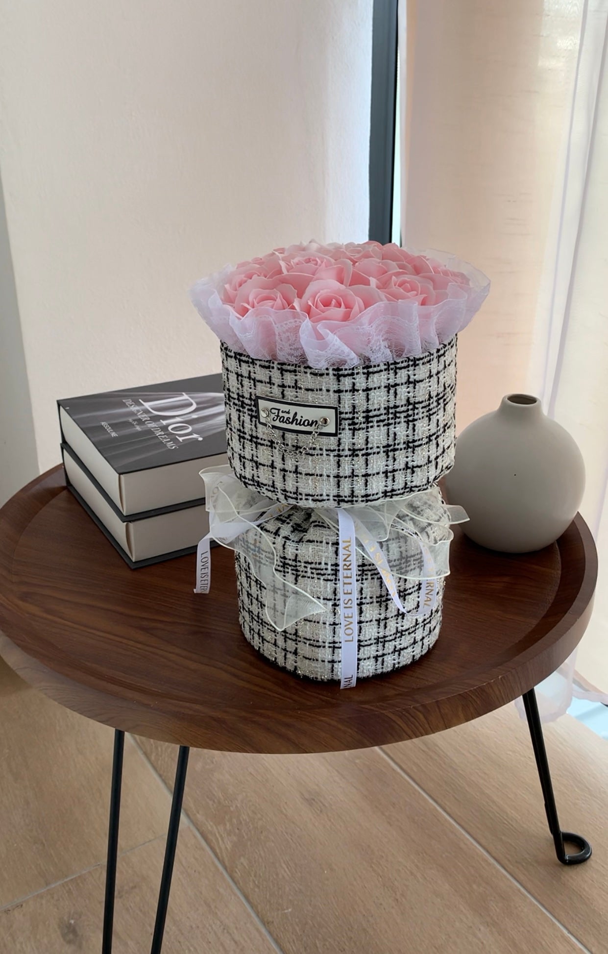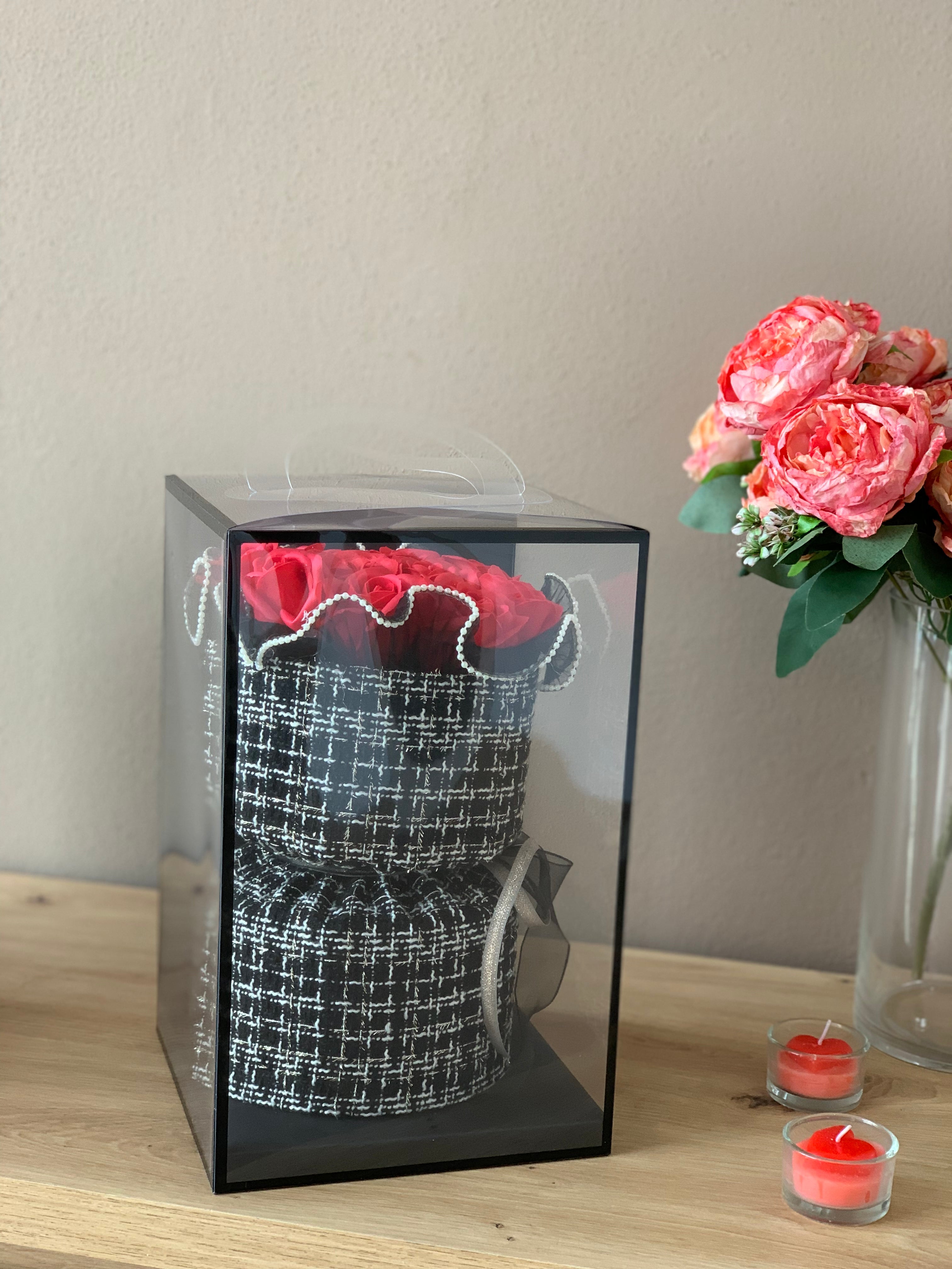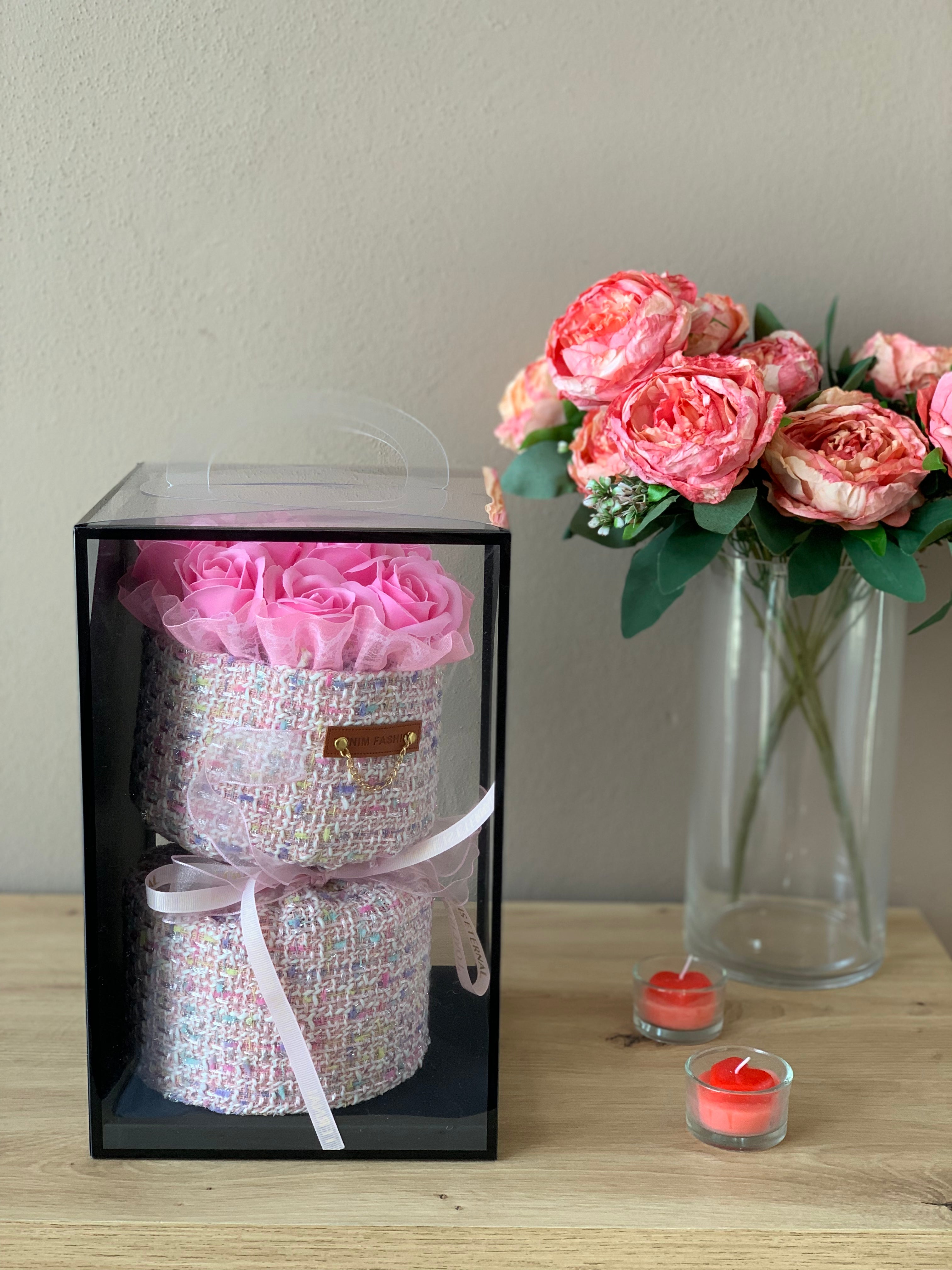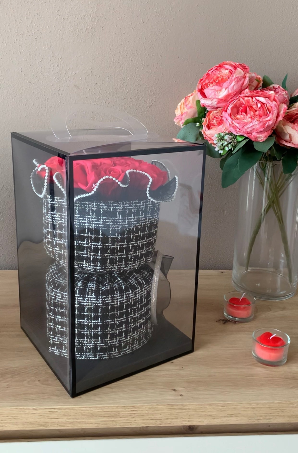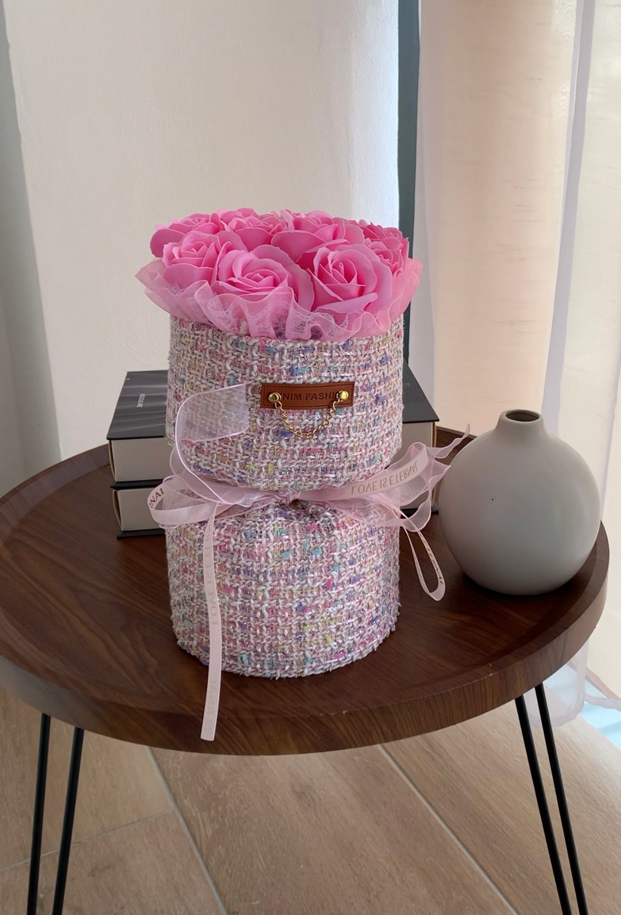 Dimensionet: 19*19*30cm  Ngjyra: rozë, e bardhë, e zezë