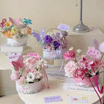 Kuti paketimi për lule në formë luleje, dhuarata perfekte, mbishkrimi “Mom”