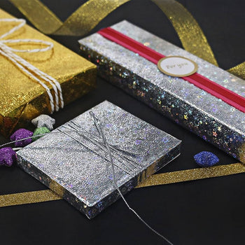 Fije letre dekorative për paketim dhuratash, paketim me dy ngjyra dhe yje gold