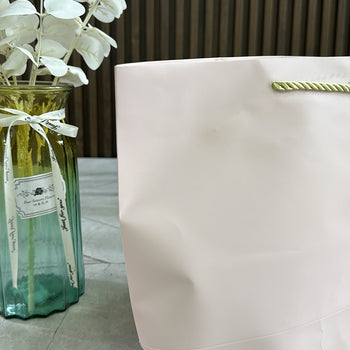 Çantë kartoni për paketimin e luleve në formë trapezi, e bardhë
